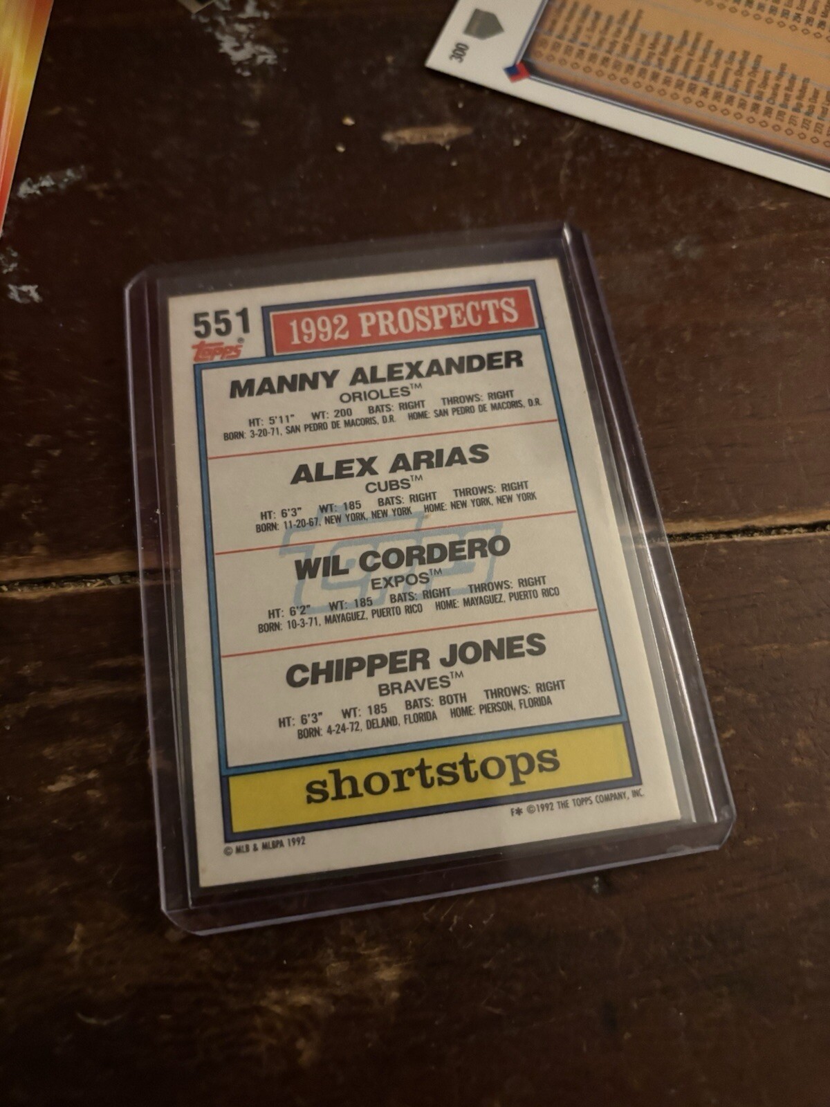 1992 Topps Top Prospects #551 Chipper Jones Wil Cordero Alex Arias RC