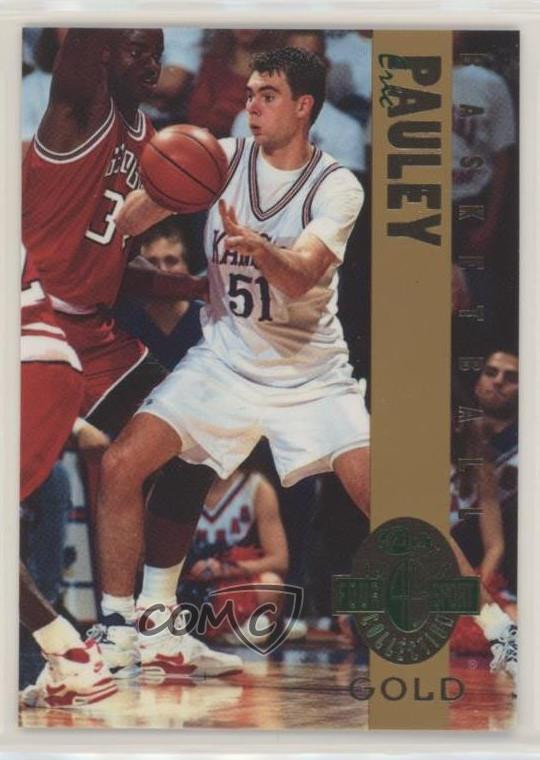 This is a fantastic vintage card for collectors! The 1993 Classic Four Sport Gold Eric Pauley rookie is a must-have, especially with its limited print run of 3,900. Featuring the Kansas Jayhawks, it’s a great addition to any multisport collection. The gold design makes it stand out, and the condition looks sharp. Perfect for fans of classic sports cards!