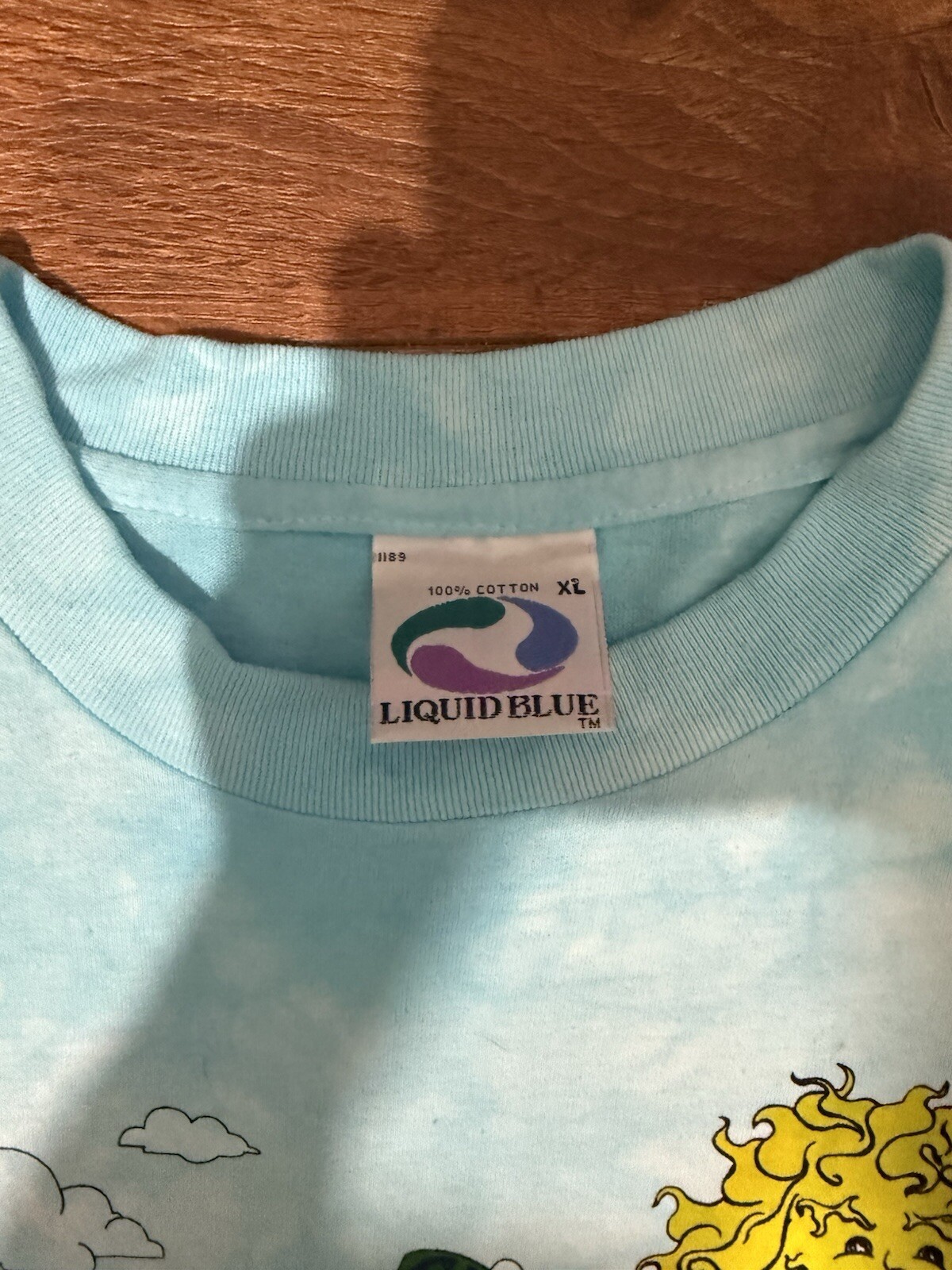 In mint condition. While laying flat, the measurements are 22 inches from armpit to armpit and 30 inches in length. The front graphic is Grateful Dead banner being pulled by an airplane in the upper left hand side by a burning sun. Upper right hand side has the Grateful Dead logo on a hot air Ballon with a skeleton in the basket. The rest of the front of the shirt is the parachuting bears starting small at the top and getting bigger as they go down to the bottom of the shirt. The graphic on the back of the shirt the airplane banner reads Songs fill the air. The bears are in a circle preforming an aerobatic stunt. More bears and the ground. Ships quickly.