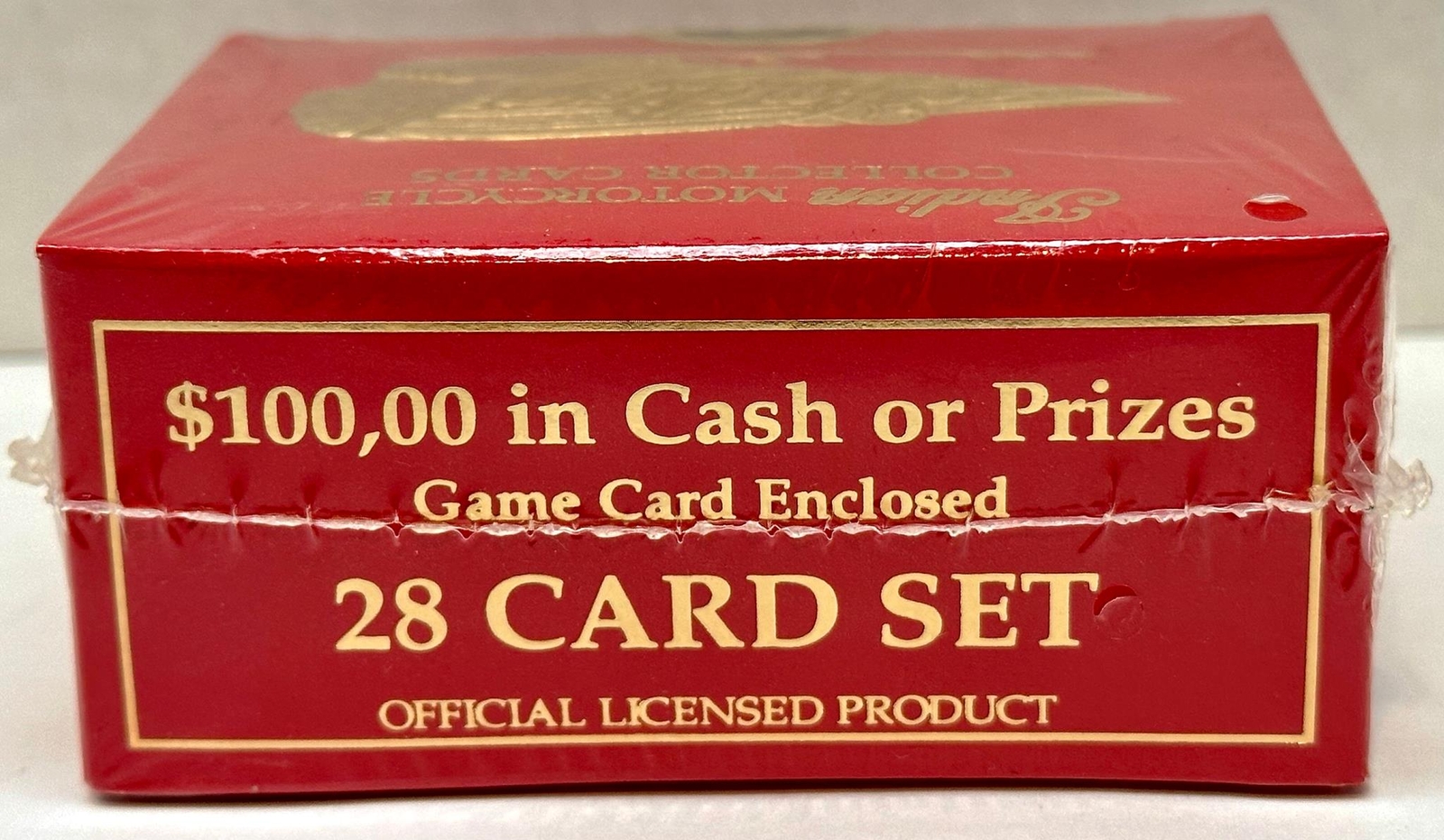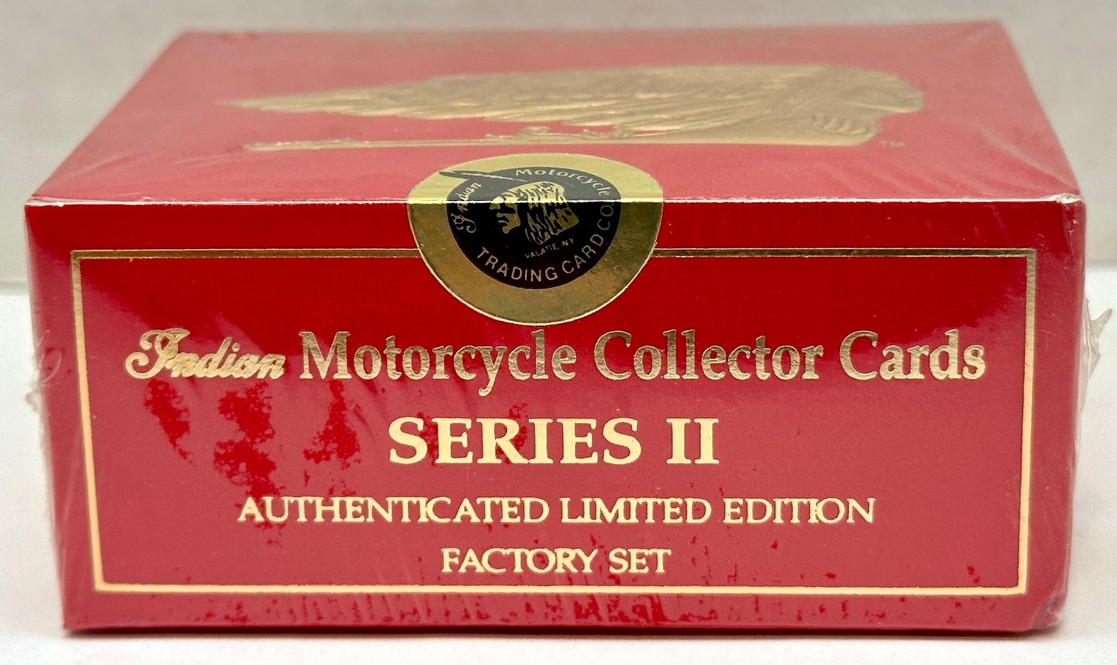 Description: Indian Motorcycle Collector Cards Series Two Factory Card Set Contents: 28 card factory set, includes game card, hologram, authenticity card and bonus Indian Motorcycle bandana. Manufacturer: Indian Motorcycle Trading Card Co, 1993. Condition: New, factory sealed.