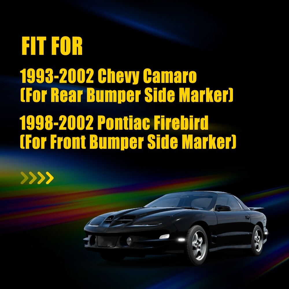 Just installed these smoked LED side markers on my '98 Camaro and they look amazing! The fit is perfect—just like OEM—and the white LEDs give a sharp, modern upgrade over the old stock lights. Super bright for better visibility, and the smoked lens adds a sleek, aggressive touch. Easy plug-and-play install with great waterproofing. Highly recommend for any 4th-gen F-body owner wanting a clean, custom look!