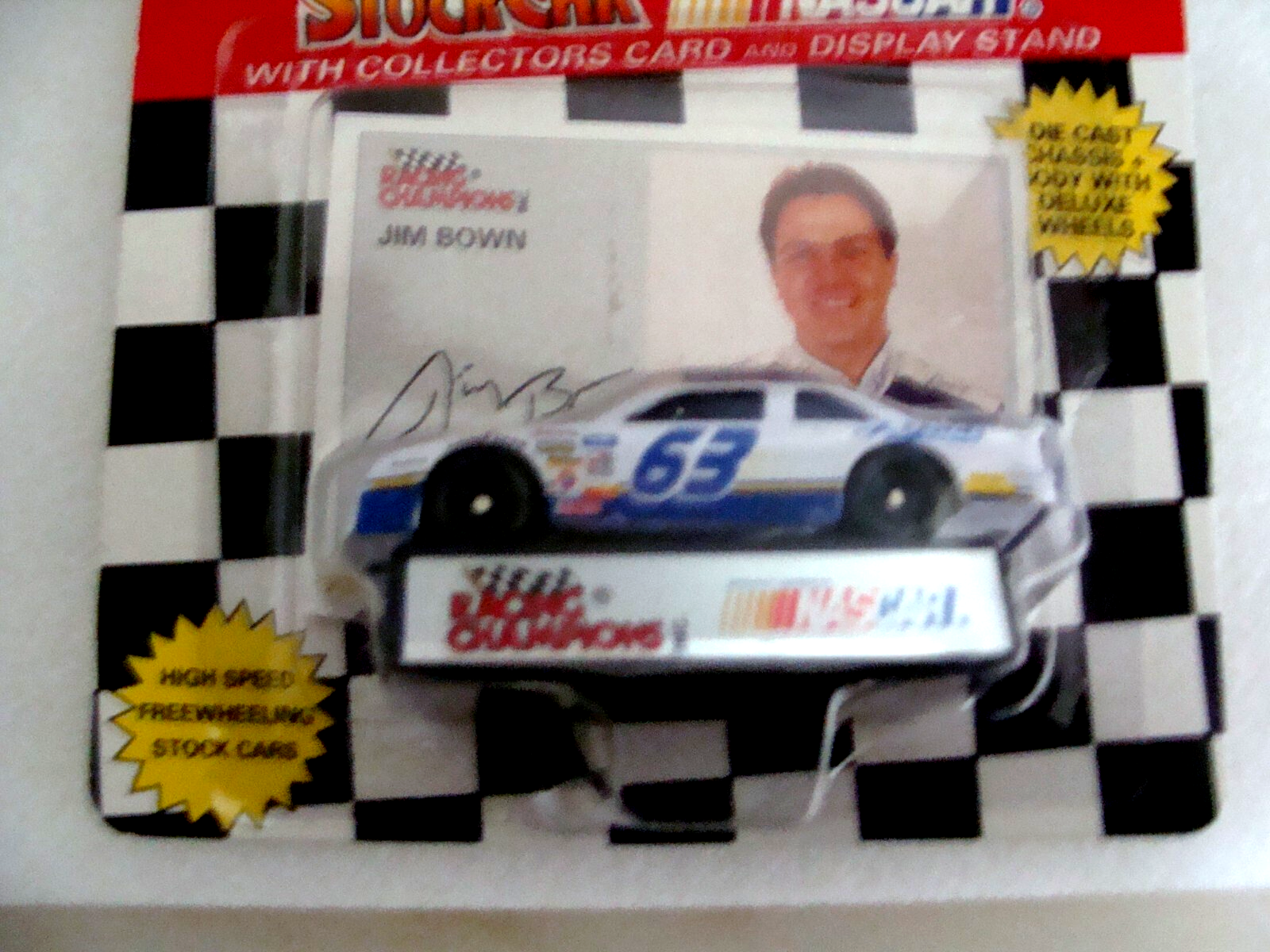 1994 Racing Champions 1:64 Nascar diecast car in new condition on the never opened original blister card. Pkg in very good condition. Bubble is clear, clean and dent free. NICE !!! Please VIEW all Photos. Dark Windows. The 1:64 scale #63 Jim Bown Lysol race car is white in color with blue trimmings. Jim Bown name above door windows. Blue #63 on roof top and door panels. LYSOL name scripted across hood, uppr rear qtr, trunk deck. Pugh Oil Co is lettered on rear panel. Goody's, Moog, Prestone, 76, Simpson, Die Hard, GoodYear are some of the contingency logos on car. Great tires with Goodyear lettering. Card of driver Jim Bown also included. Winner to pay $6.55 S/H USPS GA w/tracking. EBMP accepted. Thanks for looking & great luck with your bid.....Combo shipping will be $1.00 each for additional 1:64 or 1:87 cars. Please contact me for invoice if the cart option does not work.