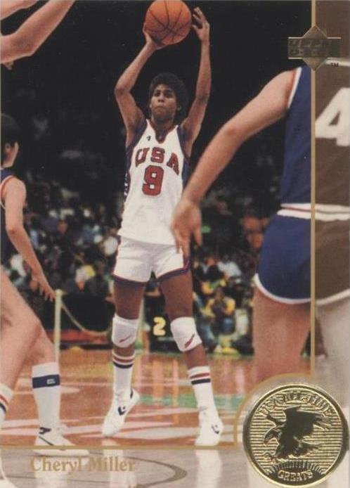 Sport:BasketballSeason:1994Team:United Statesbrand:Upper DeckLeague:FibaFeatures:Rookie, Base SetManufacturer:Upper DeckSet:1994 Upper Deck USA BasketballCard Number:89Parallel/Variety:[Base]Player/Athlete:Cheryl MillerSeries:Upper Deck USA Basketball