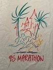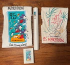 Rare lot of 4 items from the 1995 Disney World Marathon. Sweatshirt: Never worn. Excellent condition. Made by Disney Designs in the USA 50% Cotton/50% Polyester Size XL Measurements: Pit-to-pit 23" Shoulder-to-hem 28" Watch: Not in working condition. Never worn and in excellent condition externally. In original box with tags still attached. (May be an easy fix? I haven't taken it in anywhere for repair) Long Sleeve T-Shirt: Made in USA for Disney Designs. 100% Cotton. Size XL Measurements: Pit-to-pit 22" Shoulder-to-hem 29" Shirt has been worn but is in generally good condition. One small spot on lower left sleeve. Some noticeable cracking to front graphics (see close-up photo) Poster: Has never been out of plastic wrap.