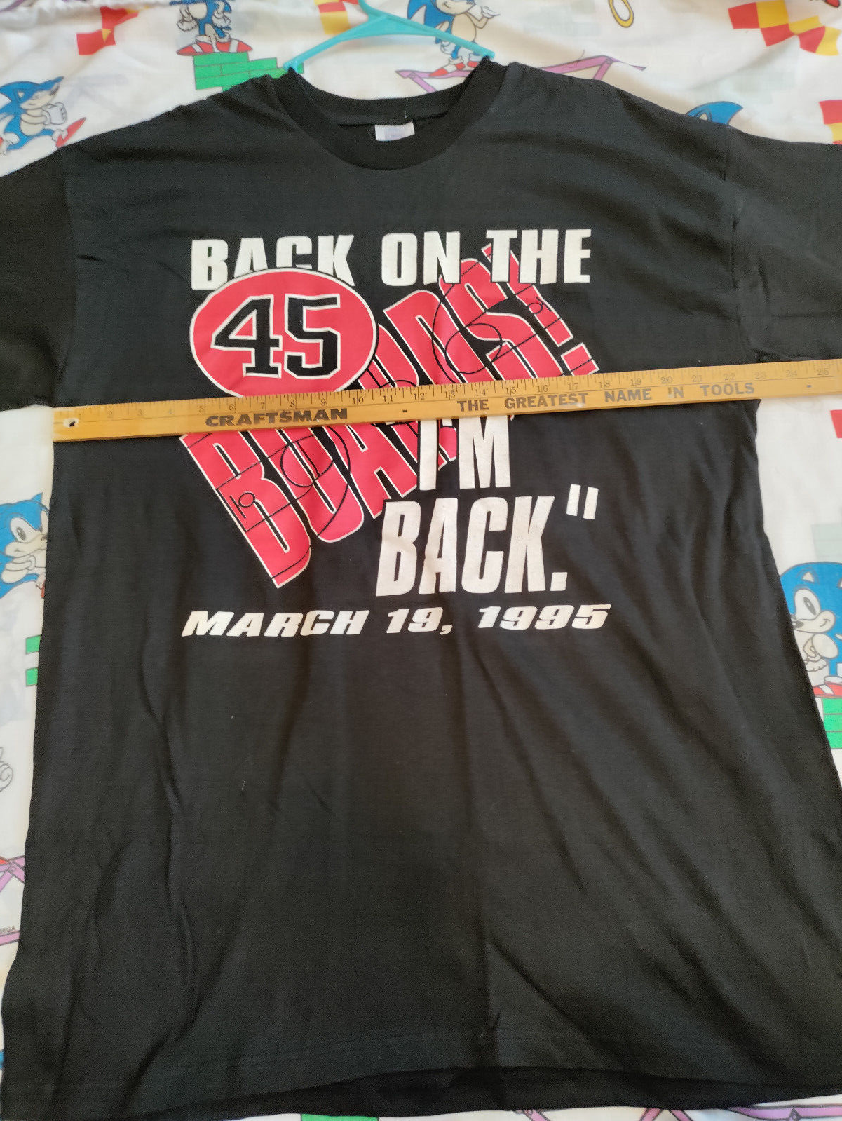 Got this vintage MJ #45 Bulls shirt in XL and it’s a total gem! No stains, no holes—just pure nostalgia in great condition. Perfect for any Jordan fan looking to rock a piece of history. Seller was super helpful with pics and details—highly recommend!