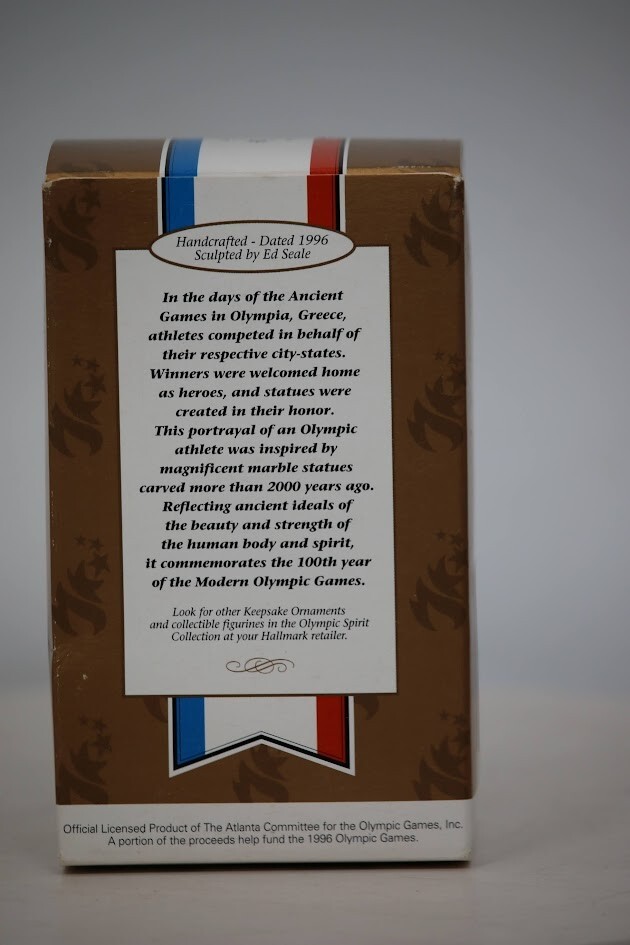 Hallmark Keepsake Ornament OLYMPIC TRIUMPH w/ BOX 1996 ATLANTA OLYMPICS SKU#007347 Look closely at the pictures to see further details. We ships USPS PLEASE see photos for detailed condition!! AC PLEASE LOOK AT THE PHOTOS CAREFULLY BEFORE PURCHASING!! If you are purchasing more than one item from us and would like combined shipping, PLEASE request an adjusted invoice from us while still in the cart and BEFORE paying. eBay does not usually calculate combined shipping accurately and you might get overcharged. Please be aware that when we photograph items, we use lighting that will show the details well. Although we try to present the product as accurately as possible, the lighting may affect the overall look of the item by appearing lighter/darker or possibly a different hue than the actual item. Depending on the type of lighting you have in your home, there may be some differences between the photos and the actual item. If this is a concern of yours, please feel free to request additional photos made in natural lighting or ask for a more detailed description of the item PRIOR TO PURCHASE! PLEASE NOTE: We greatly appreciate your interest in our item for sale. We look forward to a pleasant, quick and satisfying transaction for everybody, so please note the following information before bidding. Thank you! ITEM DESCRIPTIONS: * We will try to describe items well and provide plenty of photos. Please review these carefully before bidding or purchasing. * Only the items pictured and described are what you will receive when purchased. * We will occasionally offer an item clearly marked "AS-IS". This means that we are not sure if it works because we are unable to test it for whatever reason. We will offer these at a discounted price then a similar "working" item. It is possible that these items will work fine, but it also is possible that these items are more useful for their parts. Please only bid on or purchase these items if you are well aware of this, as we will only provide refunds of actual item price (no shipping cost refunds) for these items. * If you have any questions that aren't addressed by the descriptions or photos, please feel free to ask before you bid. * May need detailed cleaning SHIPPING: * We usually do not offer shipping to international addresses, but ARE WILLING TO TAKE CONSIDERATIONS. * We try to pack items as carefully as possible, but damage may occur during shipping. If you receive an item that was damaged in shipping, please contact us and we will work with you to resolve the problem. * We will combine shipping costs for all items the same buyer purchases from us within 2 days. Please wait to pay for items until you're done shopping with us. Please contact us if you're expecting to buy more items from us, or to have us adjust the shipping costs. * We will usually ship items out within 24 hours of payment being received Sunday through Friday at noon. We will notify the buyer if there will be a delay in shipping for some reason. Please allow additional time for holidays and weekends when the post office is closed. If payment is received after noon (EST) on Friday, the item might not be shipped until the following Monday. * We do try to recycle shipping materials as much as possible. RETURNS: We abide by eBay's Money Back Guarantee. We definitely want our customers to be happy with their purchase! You may return an item within 30 days of receiving it with the following guidelines: * If the item is defective or damaged (unless we clearly marked the listing "AS-IS"), the buyer will receive a full refund after the buyer returns it and it is received by us. Customers who falsely claim their item is defective, damaged, or not as described in order to receive a full refund and free return shipping will be permanently blocked from making future purchases from us. * If the item is as described (including "AS-IS" items) and the buyer decides for any other reason than defective/damaged to return it, only the actual price of the item will be refunded once it has been returned and it is received by us. The buyer will be asked to pay all original and return shipping charges. This includes all reasons other than defective/damaged, including wrong size, wrong type, changed mind, etc. All "AS-IS" items will fall into this category of return. Please make sure the item is what you want before purchasing it. * Please contact us before initiating a refund request. FEEDBACK: We always leave feedback at the end of transaction. We consider the transaction to be over when we receive feedback from the buyer confirming the item arrived satisfactorily. If you are unsatisfied with your purchase please contact us before leaving neutral or negative feedback. WE APPRECIATE POSITIVE FEEDBACK IF YOU ARE SATISFIED WITH YOUR PURCHASE! THANK YOU FOR YOUR INTEREST IN THIS ITEM!
