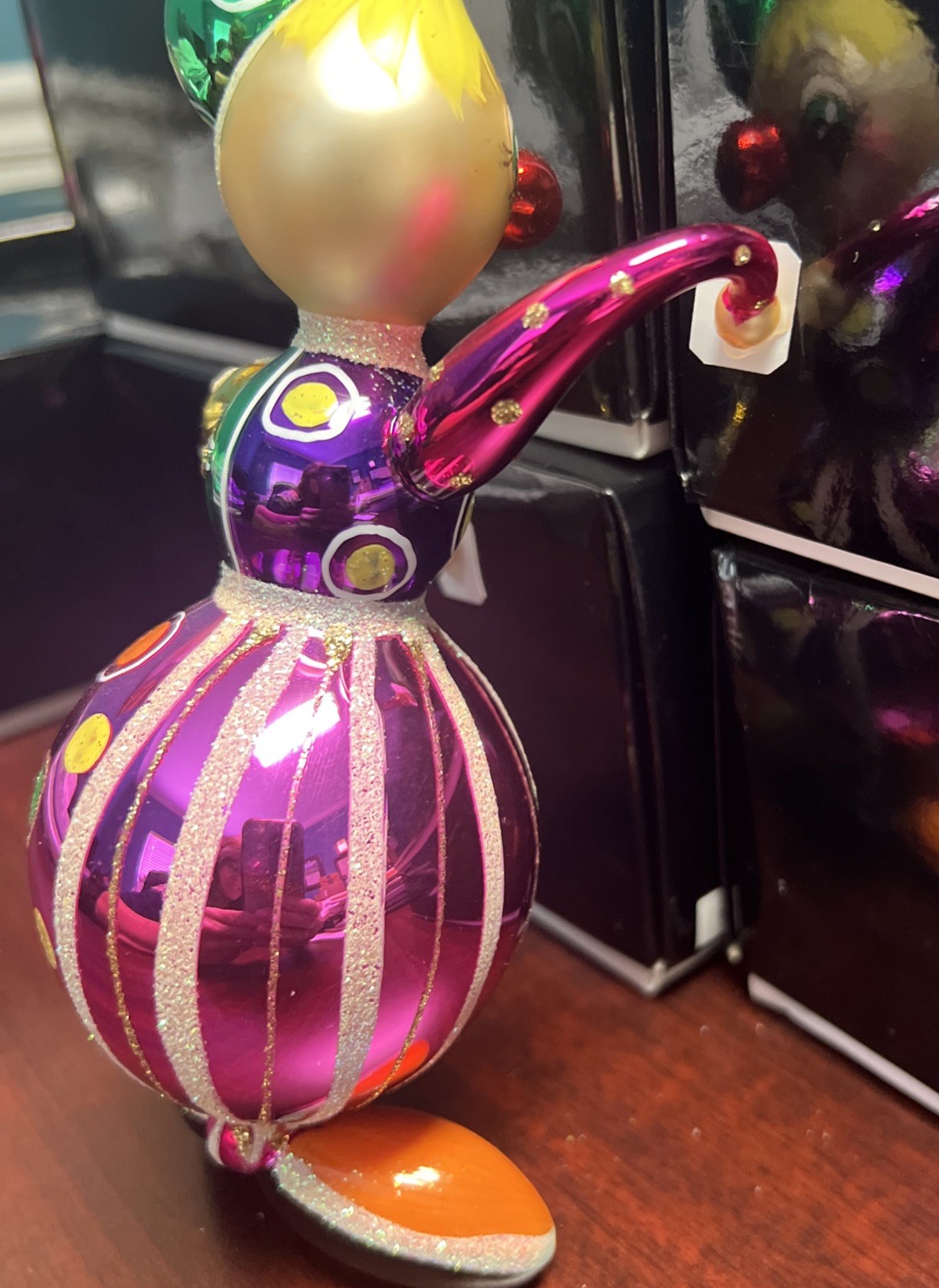 This Christopher Radko Italian ornament from 1996 is charming. The clown is colorful and cute. The ornament is in mint condition but unfortunately is missing the original box.