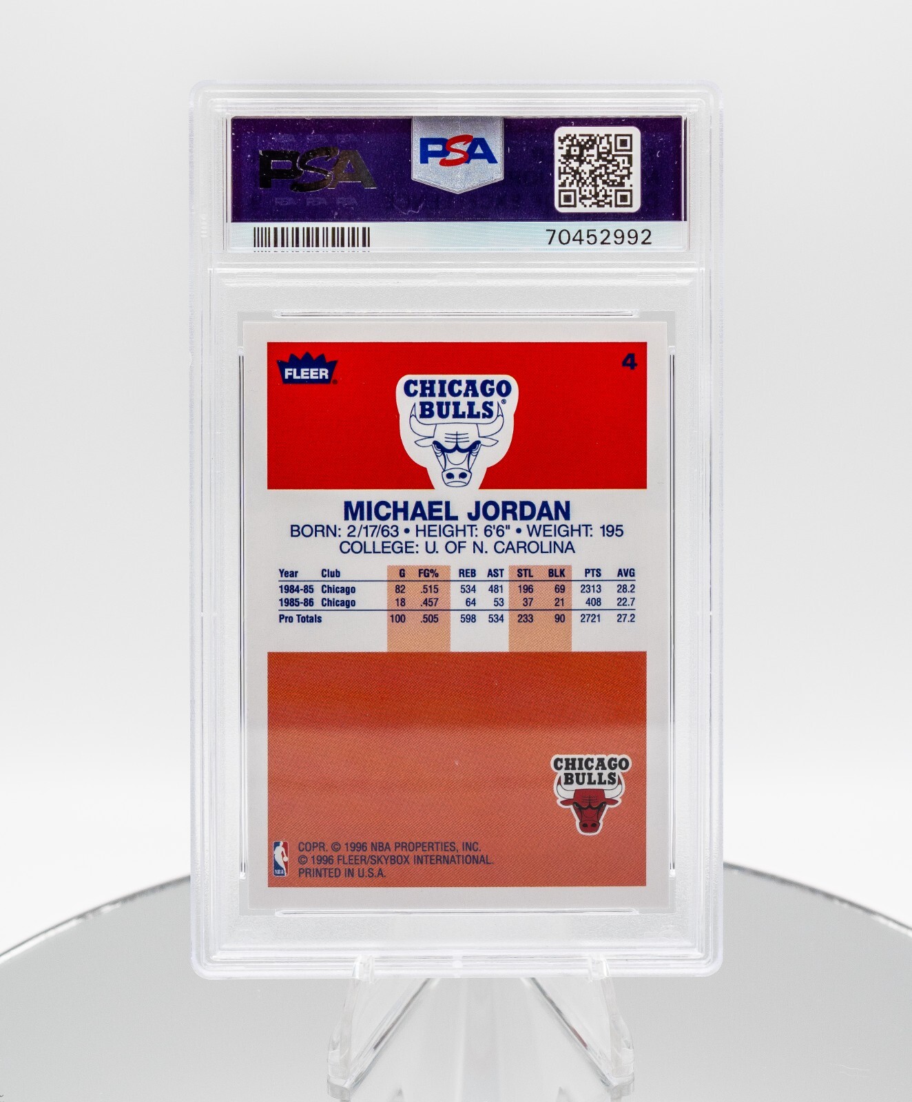 This is a 1996 Fleer Excel trading card featuring basketball legend Michael Jordan. The card is from the "Decade of Excellence" set, with a grade of 9 indicating excellent condition. It is a sports trading card manufactured by Fleer in 1996, depicting Jordan during the 1996 season.