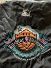 Get ready for the 1996 NBA All Star game with this windbreaker jacket from Starter. The jacket features the logo of the San Antonio Spurs, the team that played in the All-Star Game that year. It is made of high-quality materials to keep you warm and comfortable during the game. The jacket is available in size L and is perfect for any basketball fan who wants to show off their love for the sport.