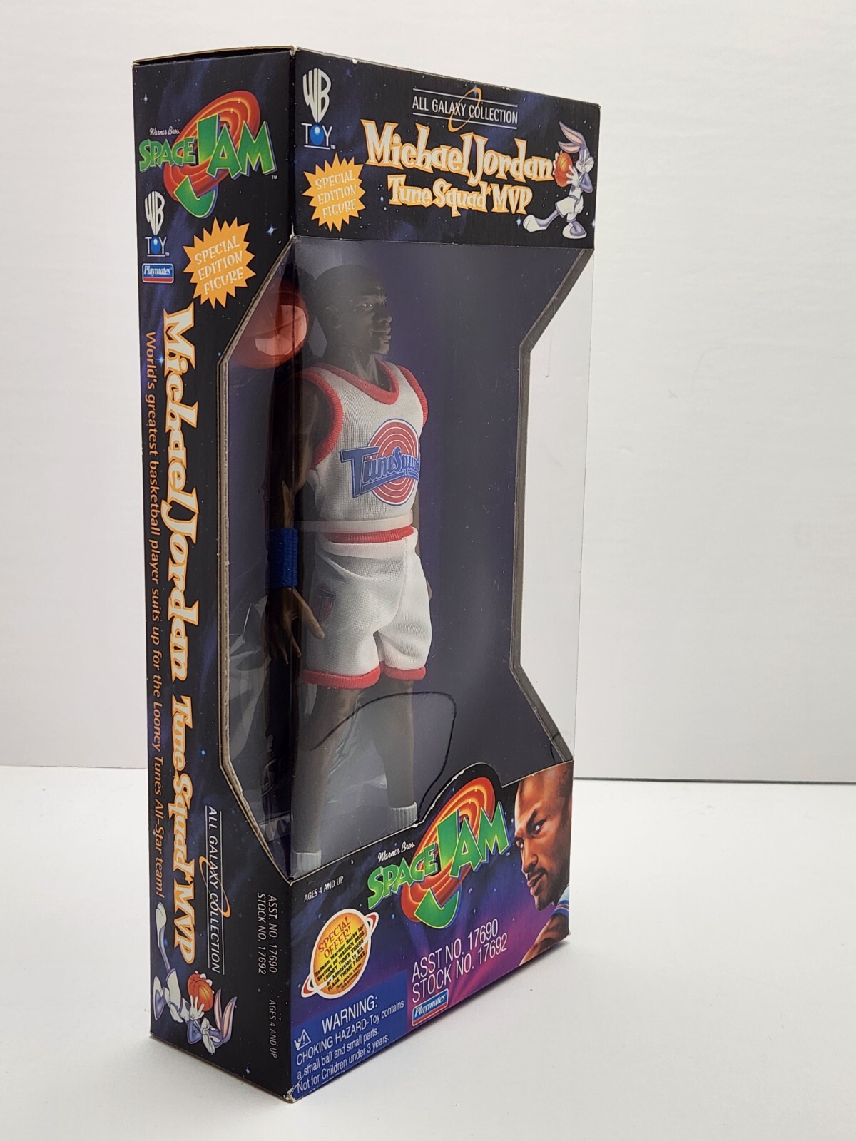 Here we have a vintage WB TOY Playmates SPACE JAM 1996 1:8 Scale Michael Jordan - Tune Squad MVP 9" Action Figure with Figure Stand, Basketball . This figure is new and in a sealed Blister box. Package is in great vintage shape. ( very minor blemishes ) (photos above) Blister panel is clear with normal vintage wear. (photos above) This SPACE JAM Michael Jordan - Tune Squad MVP Action Figure is so nostalgic & a super cool collectable. SO TREAT YOURSELF TODAY! This item is New, Clean, Unopened and in Great Vintage Shape . This item is a VINTAGE Collectable and is sold as such. I try to describe the item as accurately as possible. PLEASE REFER TO ALL 24 PHOTOS ABOVE TO DETERMINE THE CONDITION OF ITEM AND THAT IT MEETS YOUR OWN SATISFACTION. THE PHOTOS ARE CONSIDERED TO BE PART OF MY OVERALL DESCRIPTION. I have more fun/cool items at Smittyz Oddz Endz n Collectablez . Please visit and 'favorite' my store at: https://www.ebay.com/str/smittyzoddzendzncollectablez Thank you for stopping by and viewing my page.