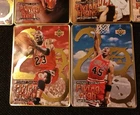 Take a look at this amazing 1996 Upper Deck Michael Jordan Flying High 10 Card Set. This set includes rare metal cards that are a must-have for any basketball trading card collector. The cards feature Jordan in action during the 1996-97 season and are a perfect addition to your collection. The set comes complete with all 10 cards and is a great investment for any collector. Don't miss out on this opportunity to own a piece of basketball history. Original tin with plastic card divider is included with free shipping. See photos for close ups and conditions.