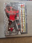This sports trading card features one of the greatest basketball players of all time, Michael Jordan, in his 1996-97 Fleer Metal edition. The card is made of high-quality metal material and is part of the base set, with card number 11. It is perfect for collectors and fans of the Chicago Bulls team and the National Basketball Association (NBA) league. The 1996-97 Fleer Metal set is manufactured by Fleer/SkyBox International and is a must-have for any sports trading card enthusiast. This card is a great addition to any collection and is sure to impress. Get your hands on this rare and valuable card today!