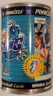 This listing is for the hard to find 1997 Pinnacle Inside WNBA Sealed Can featuring the Vicky Bullett rookie card image with a sealed pack of 10 cards inside it as pictured above. These vacuum sealed steel cans are extremely colorful as can be seen in the photos and are rarely found sealed with the 10 card pack. They are from the original first series release and are not found very often as supplies have dried up! This can is approximately 4 1/2" tall, almost 3" in diameter, is in great condition with only very minor signs of wear (possible light scratches or dents), and has no rust as is often found on these over 25 year old collectibles! If you were to decide to open the can and then the inner pack, the odds for the different inserts are; Court Collection (81 cards) 1:7 packs, Executive Collection (81 cards) 1:47 packs, My Town (8 cards) 1:19 packs, and Team Development (8 cards) 1:19 packs Any odd reflection spots or color patterns in the images are likely from the camera. Domestic shipping will be free. International bidders please email us for a shipping quote. We do accept eBay payments. If you are an international bidder, we may require that you pay for insured USPS Global Priority Mail for this item so that there will be a tracking number and full protection. Please take a look at our other items available for sale. If you have any questions at all, please feel free to email us.