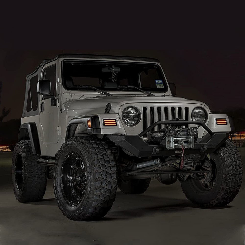 These smoked LED fender markers are a perfect upgrade for my TJ Wrangler! The sleek smoked housing looks way better than stock, and the bright LEDs make me more visible on the road. Installation was plug-and-play—no wiring modifications needed. They feel solid, have a tight fit, and the IP67 rating means no worries about water damage. Definitely recommend for anyone wanting to modernize their Jeep’s look while improving safety.
