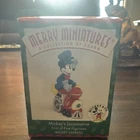 The "DISNEY MICKEY EXPRESS Merry Miniatures" by Hallmark is a vintage collectible ornament set from 1998 featuring five miniature figurines. The set includes Mickey Mouse and friends on a train, with the figures being animated and decorative. The theme of the ornaments is centered around the Mickey Mouse Train, making it a festive addition to any Christmas decor. Each item is brand new in its original packaging, making it a valuable find for collectors of Disney memorabilia.