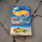 The 1998 Hot Wheels Porsche 928 in gold with chrome 5 Dot Spoke Wheels is a 1:64 scale diecast car part of the Mainline/Collector series. This collectible model features tinted windows and comes in an unopened box, making it a desirable addition for die-cast car enthusiasts. With its detailed design and specific year of manufacture being 1973, this Porsche model showcases a classic and sleek appearance that is sure to appeal to fans of both Hot Wheels and Porsche vehicles.