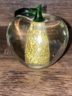 1998 LOR Ritz hand blown clear glass apple gold green paperweight Teacher Gift. Has a slight scratch but overall great condition.