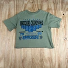 Show your love for the Kentucky Wildcats with this vintage 1998 NCAA Champions women's cropped shirt. The green shirt features the team's logo and is made by Anvil. It's perfect for basketball fans and is a great addition to any collection. The shirt is size M and was made in the United States. Celebrate the team's victory with this unique piece of memorabilia. SKU: KG-14-235