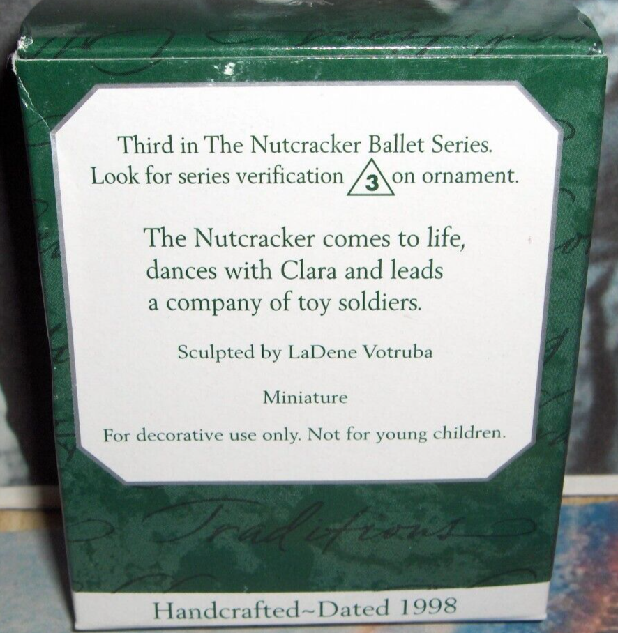 We Have For Sale A USED->Approx 1 Inch-> Miniature Hallmark Tree Ornament.. ( 1 ) Hallmark Ornament / This Nutcracker Is The Third In His Series.. ( 2 ) Type / Nutcracker Ballet Ornament... ( 3 ) Collector's / Make This Cute Nutcracker Part Of Your Miniature Tree Decorations... ( 4 ) Year / 1998 ( 5 ) Lighted / None ( 6 ) Box Condition / Box Is Nice-Look At Pictures...Check Out Our Many Other Hallmarks In Our EBAY STORE.. ( 7 ) Ornament Condition / Mint In Box... ( 8 ) Org Price Tag Intact / Yes SHIPPING WITH TRACKING IS FREE TO THE USA... -->>ALL OUR ORNAMENTS SHIP TO YOU IN BRAND NEW BOXES-NOT ENVELOPES OR SOMEONE ELSE'S SECOND HANDED USED BOXES..