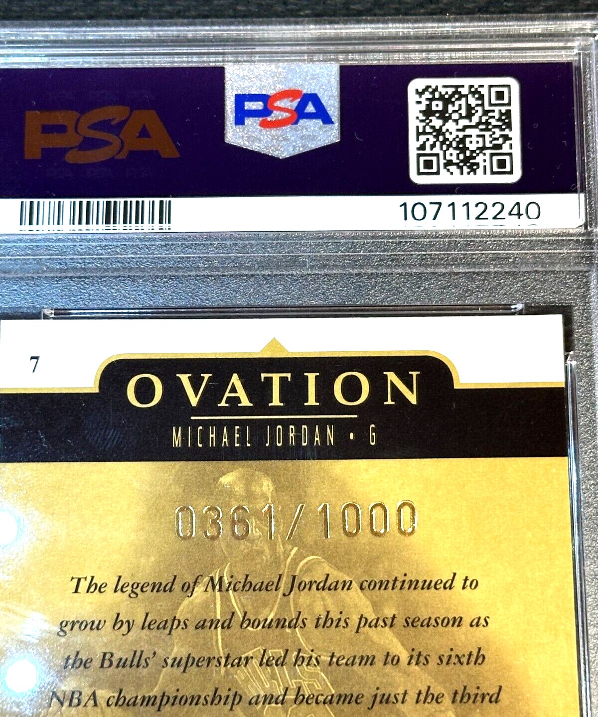 π₯ 1998 UD OVATION GOLD #7 MICHAEL JORDAN /1000 PSA 8 π₯