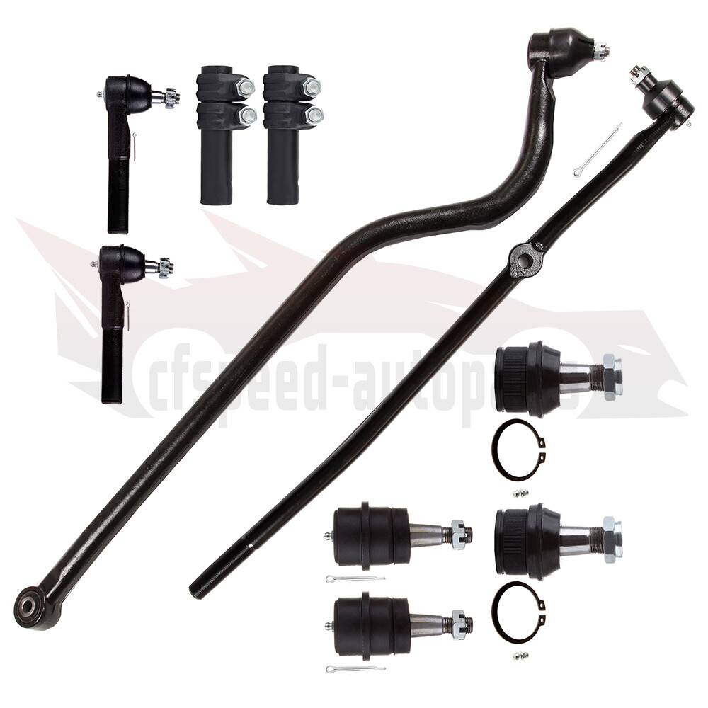 1.Fit For 1998 - 1999 Dodge RAM 1500 All 4WD/4x4 Models 1998 - 1999 Dodge RAM 2500 All 4WD/4x4 Models WithDANA 44 Only 2.Package Includes: 1x Part# Front Right Outer Tie Rod Drag Link - DS1457 2x Part# Inner Tie Rods Ends Connecting @ Pitman Arm - ES3497 1x Part# Front Track Bar - DS1413 2x Part# Tie Rod Adjusting Sleeves - ES2012 2x Part# Front UpperSuspension Ball Joint - K3134 2x Part# Front Lower Suspension Ball Joints - K8195 Notes 10pcs Front Suspension Ball Joint Tie Rods Track Bar Kit for 1998-1999 Ram 4x4 1.Fit For 1998 - 1999 Dodge RAM 1500 All 4WD/4x4 Models 1998 - 1999 Dodge RAM 2500 All 4WD/4x4 Models WithDANA 44 Only 2.Package Includes: 1x Part# Front Right Outer Tie Rod Drag Link - DS1457 2x Part# Inner Tie Rods Ends Connecting @ Pitman Arm - ES3497 1x Part# Front Track Bar - DS1413 2x Part# Tie Rod Adjusting Sleeves - ES2012 2x Part# Front UpperSuspension Ball Joint - K3134 2x Part# Front Lower Suspension Ball Joints - K8195 Notes (1).Please check the fitment chart above before payment making sure all the suspension parts listed on this page are compatible with your automobile. (2).Please refer to Moog official website before narrowing down your search so as to avoid unnecessary item not as described return requests. (3).Please contact our customer services for targeted discount after all the items are received if you have reached any targeted discount thresholds, the terms of which is at the bottom of this page. If you are interested with any other suspension parts, please click and save our store . Ball Joint Replacement Guideline: If there is a knocking or clunking noise in the area of the front axle when the car is traveling over road bumps, potholes or curbs, then there is usually a defect in a component of the wheel suspension. Picture(A) The side of the front axle from which the (vibration) noise is emanating can already be determined during a test drive. The type of noise also already provides certain indications for maintenance regarding which components might be faulty. Picture(B) 1.Raise the vehicle and remove the front wheels. 2.To loosen the fastening screws and fixing nuts of the compression ball joint more easily, spray them with rust remover and allow to act for a few minutes. Picture(C) 3.Loosen the fastening screws of the broken ball joint on the control arm and remove the nuts. Picture(D) 4.Loosen and remove the fixing nut of the ball joint on the steering knuckle. Tip:If the ball stud rotates, hold the ball stud in place with a hexagon socket. Picture(E) 5.Remove the bad or worn ball joint from the control arm. 6.Loosen the compression ball joint on the steering knuckle using a suitable special tool. Picture(F) 7.Clean the cone connection. Tip:For better sealing and durability of the ball joint sleeve, a little silicone grease can be applied to the contact surface. Picture(G) 8.Insert new compression ball joint in the control arm and steering knuckle and tighten with new fixing nuts. 9.Reinstall front wheels. Lower the vehicle and tighten the wheel studs to the tightening torque specified by the vehicle manufacturer. 10.Measure the chassis and adjust it using the various holes on the compression ball joint if necessary. 11.Finally, carry out a test drive. Sway Bar Stabilizer Link Replacement Guideline: While driving, the following signs may indicate a faulty sway bar stabilizer link: (1).Rattling and thumping noises on rough roads. (2).Imprecise vehicle handling. (3).Stronger inclination of the vehicle during cornering. If the sway bar stabilizer link is found to be defective, it should be replaced as described below. Picture(A) 1.Raise vehicle and remove front wheels. Tip:Always check both stabilizer links and replace them in pairs if necessary. 2.Spray fastening nuts of the stabilizer link with rust remover and let act for a few minutes. Picture(B) 3.Loosen the lower fastening nut of the stabilizer link at the stabilizer and remove. Tip:If the ball stud also starts to turn, hold it with a suitable tool. 4.Press stabilizer link out of torsion bar. Picture(C) 5.Loosen the upper fastening nut of the stabilizer link at the suspension strut and remove it. Tip:If the ball stud also starts to turn, hold it with a suitable tool. Picture(D) 6.Press stabilizer link at suspension strut out of bracket. Picture(E) 7.Insert new stabilizer link at suspension strut. Picture(F) 8.Tighten stabilizer link at suspension strut to the tightening torque specified by the vehicle manufacturer. Tip:Secure the ball stud against twisting with a suitable tool. Picture(G) 9.Insert new stabilizer link at stabilizer. 10.Tighten stabilizer link at stabilizer to the tightening torque specified by the vehicle manufacturer. Tip:Secure the ball stud against twisting with a suitable tool. Picture(H) 11.Remount the front wheels. Lower the vehicle and tighten the wheel studs to the tightening torque specified by the vehicle manufacturer. Tip:Even if replacing the stabilizer link does not directly affect the chassis setting, we recommend checking the axle setting and adjusting if necessary after working on the suspension. 12.Conclude with a test drive. Tie-Rod End Replacement Guideline: If you feel a bump in the steering when driving over road bumps or curbs, this might be due to worn tie rod ends or inner tie rods. Clicking noises during sudden steering movements can also be symptoms of a defective tie rod. In order to determine the exact cause and replace the defective tie rod, the car must be elevated with a vehicle lift in order to be examined more closely. This useful tip applies to the exchange of tie rod ends and inner tie rods, which together form the so-called tie rod. Picture(A) Note: Cleanliness is extremely important when working on the power steering. Incorrect work and contamination can lead to leakage and, in the worst case, to failure of the steering assistance. 1.Lift the vehicle and dismount the front axle wheels. 2.Spray the fastening nut of the tie rod end with rust remo