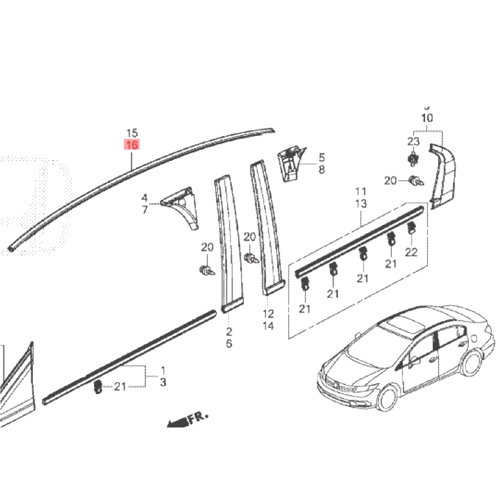 $ 6.0903-07 Accord Right Rear Window Run Channel Molding Seal