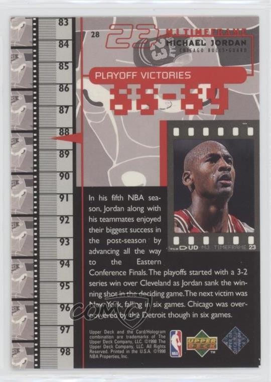 1998-99 Upper Deck Michael Jordan Living Legend - [Base] #28 Michael Jordan - Basketball Card - Featuring the Chicago Bulls - Featuring Michael Jordan Search for more: 1998-99 Upper Deck Michael Jordan Living Legend Search for more: 1998-99 Upper Deck Michael Jordan Living Legend - [Base] View all of our Listings Auctions Buy It Now About Us Located in the beautiful Pacific Northwest, COMC (Check Out My Cards) is the world's largest consignment service for trading card singles. More than 10,000 people have used our consignment service to list over 50 million trading cards. Find out how we can help you consign your items on eBay by contacting us through eBay messaging. COMC -- "The Safe & Easy Way to Buy & Sell" Representative Image - Select Specific Item above to see image of actual item Representative Image - Select Specific Item above to see image of actual item Raw Condition for Modern Cards Unless otherwise noted, raw modern cards are listed in Near Mint-Mint condition or better. A NM-MT card appears to be Mint at first glance, but upon closer inspection, may exhibit some of the following: minor print defects (e.g. roller marks, print line, dimple), minor scratches, slight edge wear, and slight corner wear. Centering is clearly visible in the images provided and does not factor into our condition assessment. Raw Condition for Vintage Cards Unless otherwise noted, raw vintage cards are listed in Excellent condition or better. An EX card may exhibit some of the following: minor rounding of corners, surface wear, print defects, light scratches, and slight edge wear/chipping. Centering is clearly visible in the images provided and does not factor into our condition assessment. Domestic Shipping Combined shipping for multiple items is available. To receive combined shipping, please ensure all desired items are in your eBay shopping cart before proceeding to checkout. eBay limits orders to 40 items per order. We automatically combine multiple orders placed on the same day. If you place multiple orders on the same day, please contact us to request a refund of applicable shipping costs. Signature confirmation may be required on invoices over $400. All cards are protected and shipped securely. International Shipping COMC offers eBay's International Shipping (EIS) for international orders under $2,500* (see country exceptions below). All duties and import fees are paid at checkout; in the rare event that there are additional import fees upon delivery, these are borne by the buyer. EIS packages route through a shipping hub in Erlanger, KY before shipping to their final destination. Please note that EIS does not allow for combined shipments. The shipping rates are determined by eBay and cannot be adjusted. *Maximum sale price exceptions: Colombia, Kuwait ($2,000); Taiwan ($1,539); Chile, Costa Rica, Guatemala, Honduras, Trinidad and Tobago ($1,000); Antigua and Barbuda, Aruba, Belize, Dominica, Grenada, Philippines, Saint Kitts and Nevis, Saint Lucia, Montserrat, Turks and Caicos Islands ($500); Dominican Republic, El Salvador ($200). Please request a shipping quote through eBay messaging for orders that exceed the maximum sale price supported by eBay's International Shipping. You will be responsible for all duties and import fees for international orders shipped outside the EIS. All cards are protected and shipped securely. Payment COMC does not accept offers on our cards through our eBay storefront. COMC utilizes eBay’s managed payments system. If you are experiencing difficulties making a payment, please contact eBay for assistance. Return Policy Returns are only accepted on the rare occasion the item is not as described. If you are making a return, please initiate the return process through eBay so a mailing label can be provided for you. Prior to listing, our expert team carefully assessed this item to represent it accurately. Please review the description and high-definition images prior to purchasing to ensure this item meets your satisfaction. We welcome you to contact us if you have further questions about this item. Trust and Integrity COMC carefully assesses each item consigned to us to prevent fraudulent items from entering the marketplace. If you believe an item offered on COMC may be fraudulent, please contact us with details so we can investigate the issue. Items we determine are outside our supported items policy may be removed. Last Modified: 7/9/2025 10:37:08 AM PDT