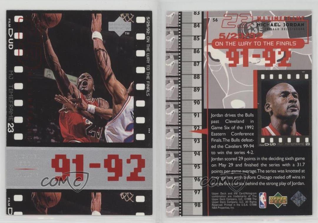 1998-99 Upper Deck Michael Jordan Living Legend - [Base] #56 Michael Jordan - Basketball Card - Featuring the Chicago Bulls - Featuring Michael Jordan Search for more: 1998-99 Upper Deck Michael Jordan Living Legend Search for more: 1998-99 Upper Deck Michael Jordan Living Legend - [Base] View all of our Listings Auctions Buy It Now About Us Located in the beautiful Pacific Northwest, COMC (Check Out My Cards) is the world's largest consignment service for trading card singles. More than 10,000 people have used our consignment service to list over 50 million trading cards. Find out how we can help you consign your items on eBay by contacting us through eBay messaging. COMC -- "The Safe & Easy Way to Buy & Sell" Representative Image - Select Specific Item above to see image of actual item Representative Image - Select Specific Item above to see image of actual item Raw Condition for Modern Cards Unless otherwise noted, raw modern cards are listed in Near Mint-Mint condition or better. A NM-MT card appears to be Mint at first glance, but upon closer inspection, may exhibit some of the following: minor print defects (e.g. roller marks, print line, dimple), minor scratches, slight edge wear, and slight corner wear. Centering is clearly visible in the images provided and does not factor into our condition assessment. Raw Condition for Vintage Cards Unless otherwise noted, raw vintage cards are listed in Excellent condition or better. An EX card may exhibit some of the following: minor rounding of corners, surface wear, print defects, light scratches, and slight edge wear/chipping. Centering is clearly visible in the images provided and does not factor into our condition assessment. Domestic Shipping Combined shipping for multiple items is available. To receive combined shipping, please ensure all desired items are in your eBay shopping cart before proceeding to checkout. eBay limits orders to 40 items per order. We automatically combine multiple orders placed on the same day. If you place multiple orders on the same day, please contact us to request a refund of applicable shipping costs. Signature confirmation may be required on invoices over $400. All cards are protected and shipped securely. International Shipping COMC offers eBay's International Shipping (EIS) for international orders under $2,500* (see country exceptions below). All duties and import fees are paid at checkout; in the rare event that there are additional import fees upon delivery, these are borne by the buyer. EIS packages route through a shipping hub in Erlanger, KY before shipping to their final destination. Please note that EIS does not allow for combined shipments. The shipping rates are determined by eBay and cannot be adjusted. *Maximum sale price exceptions: Colombia, Kuwait ($2,000); Taiwan ($1,539); Chile, Costa Rica, Guatemala, Honduras, Trinidad and Tobago ($1,000); Antigua and Barbuda, Aruba, Belize, Dominica, Grenada, Philippines, Saint Kitts and Nevis, Saint Lucia, Montserrat, Turks and Caicos Islands ($500); Dominican Republic, El Salvador ($200). Please request a shipping quote through eBay messaging for orders that exceed the maximum sale price supported by eBay's International Shipping. You will be responsible for all duties and import fees for international orders shipped outside the EIS. All cards are protected and shipped securely. Payment COMC does not accept offers on our cards through our eBay storefront. COMC utilizes eBay’s managed payments system. If you are experiencing difficulties making a payment, please contact eBay for assistance. Return Policy Returns are only accepted on the rare occasion the item is not as described. If you are making a return, please initiate the return process through eBay so a mailing label can be provided for you. Prior to listing, our expert team carefully assessed this item to represent it accurately. Please review the description and high-definition images prior to purchasing to ensure this item meets your satisfaction. We welcome you to contact us if you have further questions about this item. Trust and Integrity COMC carefully assesses each item consigned to us to prevent fraudulent items from entering the marketplace. If you believe an item offered on COMC may be fraudulent, please contact us with details so we can investigate the issue. Items we determine are outside our supported items policy may be removed. Last Modified: 6/28/2025 1:05:11 PM PDT