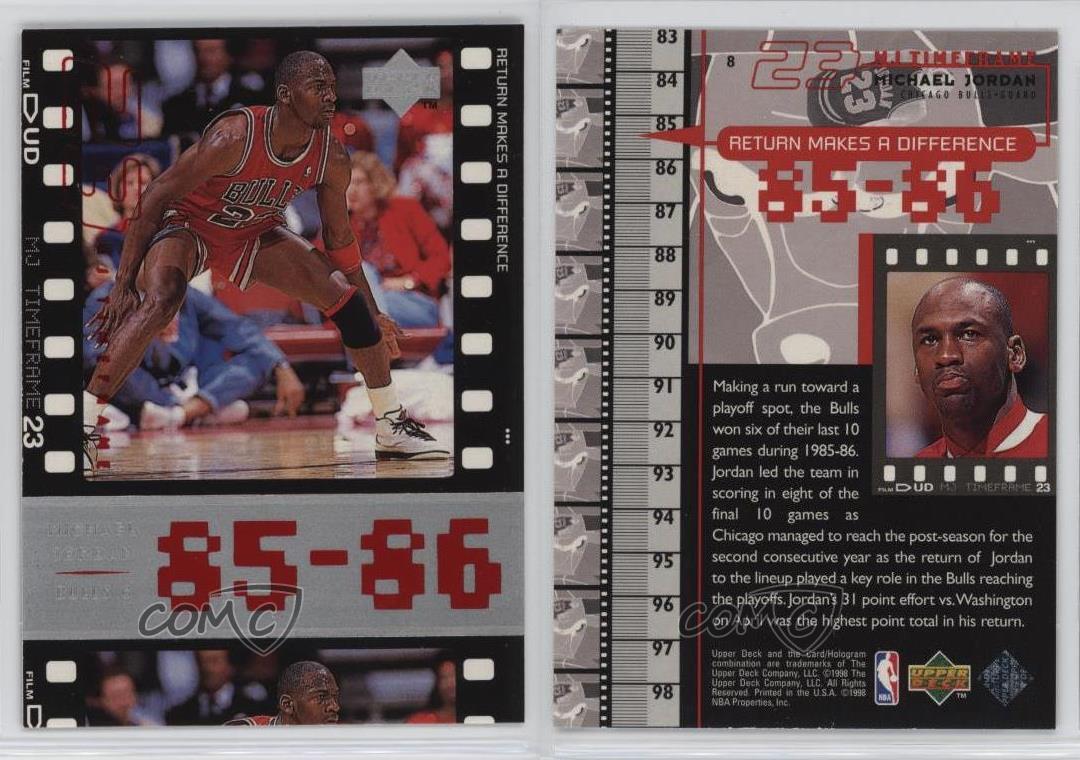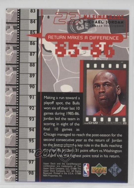 1998-99 Upper Deck Michael Jordan Living Legend - [Base] #8 Michael Jordan - Basketball Card - Featuring the Chicago Bulls - Featuring Michael Jordan Search for more: 1998-99 Upper Deck Michael Jordan Living Legend Search for more: 1998-99 Upper Deck Michael Jordan Living Legend - [Base] View all of our Listings Auctions Buy It Now About Us Located in the beautiful Pacific Northwest, COMC (Check Out My Cards) is the world's largest consignment service for trading card singles. More than 10,000 people have used our consignment service to list over 50 million trading cards. Find out how we can help you consign your items on eBay by contacting us through eBay messaging. COMC -- "The Safe & Easy Way to Buy & Sell" Representative Image - Select Specific Item above to see image of actual item Representative Image - Select Specific Item above to see image of actual item Raw Condition for Modern Cards Unless otherwise noted, raw modern cards are listed in Near Mint-Mint condition or better. A NM-MT card appears to be Mint at first glance, but upon closer inspection, may exhibit some of the following: minor print defects (e.g. roller marks, print line, dimple), minor scratches, slight edge wear, and slight corner wear. Centering is clearly visible in the images provided and does not factor into our condition assessment. Raw Condition for Vintage Cards Unless otherwise noted, raw vintage cards are listed in Excellent condition or better. An EX card may exhibit some of the following: minor rounding of corners, surface wear, print defects, light scratches, and slight edge wear/chipping. Centering is clearly visible in the images provided and does not factor into our condition assessment. Domestic Shipping Combined shipping for multiple items is available. To receive combined shipping, please ensure all desired items are in your eBay shopping cart before proceeding to checkout. eBay limits orders to 40 items per order. We automatically combine multiple orders placed on the same day. If you place multiple orders on the same day, please contact us to request a refund of applicable shipping costs. Signature confirmation may be required on invoices over $400. All cards are protected and shipped securely. International Shipping COMC offers eBay's International Shipping (EIS) for international orders under $2,500* (see country exceptions below). All duties and import fees are paid at checkout; in the rare event that there are additional import fees upon delivery, these are borne by the buyer. EIS packages route through a shipping hub in Erlanger, KY before shipping to their final destination. Please note that EIS does not allow for combined shipments. The shipping rates are determined by eBay and cannot be adjusted. *Maximum sale price exceptions: Colombia, Kuwait ($2,000); Taiwan ($1,539); Chile, Costa Rica, Guatemala, Honduras, Trinidad and Tobago ($1,000); Antigua and Barbuda, Aruba, Belize, Dominica, Grenada, Philippines, Saint Kitts and Nevis, Saint Lucia, Montserrat, Turks and Caicos Islands ($500); Dominican Republic, El Salvador ($200). Please request a shipping quote through eBay messaging for orders that exceed the maximum sale price supported by eBay's International Shipping. You will be responsible for all duties and import fees for international orders shipped outside the EIS. All cards are protected and shipped securely. Payment COMC does not accept offers on our cards through our eBay storefront. COMC utilizes eBay’s managed payments system. If you are experiencing difficulties making a payment, please contact eBay for assistance. Return Policy Returns are only accepted on the rare occasion the item is not as described. If you are making a return, please initiate the return process through eBay so a mailing label can be provided for you. Prior to listing, our expert team carefully assessed this item to represent it accurately. Please review the description and high-definition images prior to purchasing to ensure this item meets your satisfaction. We welcome you to contact us if you have further questions about this item. Trust and Integrity COMC carefully assesses each item consigned to us to prevent fraudulent items from entering the marketplace. If you believe an item offered on COMC may be fraudulent, please contact us with details so we can investigate the issue. Items we determine are outside our supported items policy may be removed. Last Modified: 6/28/2025 1:04:52 PM PDT