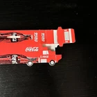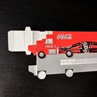 This Coca-Cola collectors' item is a miniature semi-trailer that doubles as a bank. The red and white color scheme and soda theme make it a perfect addition to any Coca-Cola or soda collection. The year of release for this item is 1999, and it features the iconic Coca-Cola branding. It is made of cardboard and is a great way to store and display spare change or other small items. THANKS FOR VIEWING OUR STORE! OUR #1 GOAL IS TO KEEP OUR CUSTOMERS SATISFIED. WE SELL THOUSANDS OF VINTAGE CLOTHING ITEMS, TOYS, COLLECTIBLES, & ANTIQUES. CONDITION: WE WILL NEVER HIDE ANY DAMAGE. IT WILL BE NOTED OR SHOWN • all items stored in a pet & smoke free environment SHIPPING: all items shipped next day with professional care. We make sure your item will arrive safely. Please read item specifics and view photos and confirm measurements before purchasing. We have exceptional customer feedback. Contact us with any questions. WE OFFER A FREE 30 DAY RETURN POLICY. ALL RETURNS MUST ARRIVE IN THE SAME CONDITION AS RECEIVED BUY AND SELL ACTION FIGURE TOY COLLECTIONS Track Page Views With Auctiva's Counter
