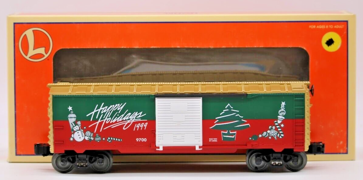Lionel 6-26243 - 1999 Christmas 9700 Boxcar Happy Holidays L/N with Box Look closely at the pictures to see further details. We ships USPS PLEASE LOOK AT THE PHOTOS CAREFULLY BEFORE PURCHASING!! If you are purchasing more than one item from us and would like combined shipping, PLEASE request an adjusted invoice from us while still in the cart and BEFORE paying. Ebay does not usually calculate combined shipping accurately and you might get overcharged. Please be aware that when we photograph items, we use lighting that will show the details well. Although we try to present the product as accurately as possible, the lighting may affect the overall look of the item by appearing lighter/darker or possibly a different hue than the actual item. Depending on the type of lighting you have in your home, there may be some differences between the photos and the actual item. If this is a concern of yours, please feel free to request additional photos made in natural lighting or ask for a more detailed description of the item PRIOR TO PURCHASE! PLEASE see photos for detailed condition!! There may be pieces that are missing or broken including, but not limited to, couplers, brake wheels, steps, ladders, railings, etc. May need detailed cleaning. PLEASE NOTE: We greatly appreciate your interest in our item for sale. We look forward to a pleasant, quick and satisfying transaction for everybody, so please note the following information before bidding. Thank you! ITEM DESCRIPTIONS: * We will try to describe items well and provide plenty of photos. Please review these carefully before bidding or purchasing. * Only the items pictured and described are what you will receive when purchased. * We will occasionally offer an item clearly marked "AS-IS". This means that we are not sure if it works because we are unable to test it for whatever reason. We will offer these at a discounted price then a similar "working" item. It is possible that these items will work fine, but it also is possible that these items are more useful for their parts. Please only bid on or purchase these items if you are well aware of this, as we will only provide refunds of actual item price (no shipping cost refunds) for these items. * If you have any questions that aren't addressed by the descriptions or photos, please feel free to ask before you bid. SHIPPING: * We offer international shipping, if you have any questions please reach out. * We try to pack items as carefully as possible, but damage may occur during shipping. If you receive an item that was damaged in shipping, please contact us and we will work with you to resolve the problem. * We will combine shipping costs for all items the same buyer purchases from us within 2 days. Please wait to pay for items until you're done shopping with us. Please contact us if you're expecting to buy more items from us, or to have us adjust the shipping costs. * We will usually ship items out within 24 hours of payment being received Sunday through Friday at noon. We will notify the buyer if there will be a delay in shipping for some reason. Please allow additional time for holidays and weekends when the post office is closed. If payment is received after noon (EST) on Friday, the item might not be shipped until the following Monday. * We do try to recycle shipping materials as much as possible. RETURNS: We abide by eBay's Money Back Guarantee. We definitely want our customers to be happy with their purchase! You may return an item within 30 days of receiving it with the following guidelines: * If the item is defective or damaged (unless we clearly marked the listing "AS-IS"), the buyer will receive a full refund after the buyer returns it and it is received by us. Customers who falsely claim their item is defective, damaged, or not as described in order to receive a full refund and free return shipping will be permanently blocked from making future purchases from us. * If the item is as described (including "AS-IS" items) and the buyer decides for any other reason than defective/damaged to return it, only the actual price of the item will be refunded once it has been returned and it is received by us. The buyer will be asked to pay all original and return shipping charges. This includes all reasons other than defective/damaged, including wrong size, wrong type, changed mind, etc. All "AS-IS" items will fall into this category of return. Please make sure the item is what you want before purchasing it. * Please contact us before initiating a refund request. FEEDBACK: We always leave feedback at the end of transaction. We consider the transaction to be over when we receive feedback from the buyer confirming the item arrived satisfactorily. If you are unsatisfied with your purchase please contact us before leaving neutral or negative feedback. WE APPRECIATE POSITIVE FEEDBACK IF YOU ARE SATISFIED WITH YOUR PURCHASE! THANK YOU FOR YOUR INTEREST IN THIS ITEM!