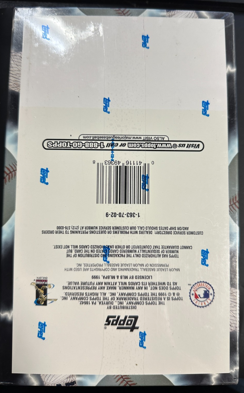 We're offering this factory sealed box of 1999 Topps Baseball Series 2. It's in nm condition and still has the factory shrink-wrap on it.