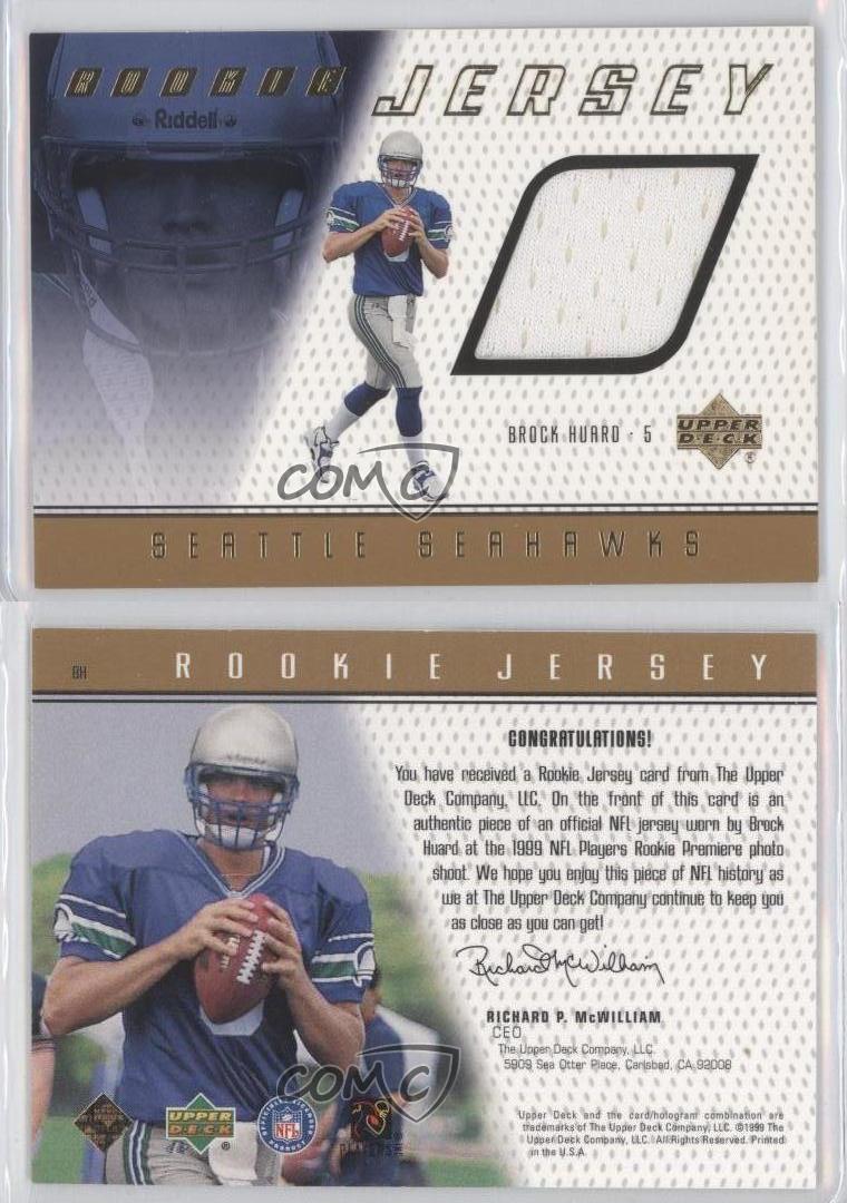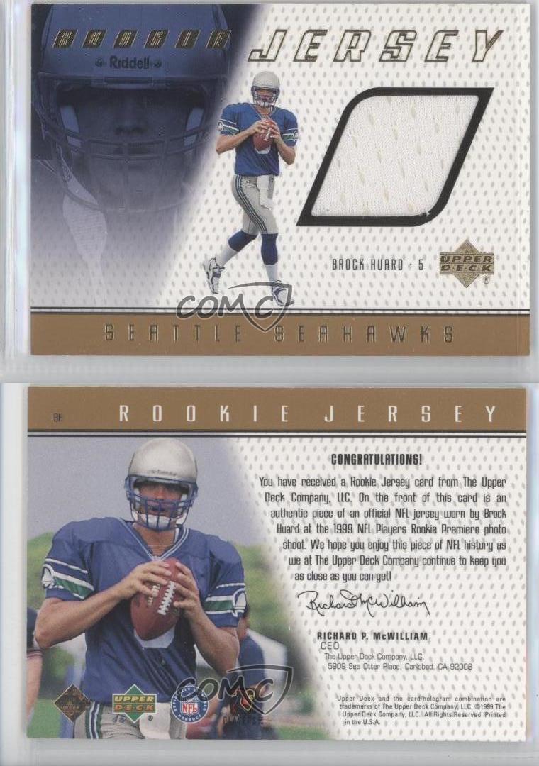 1999 Upper Deck - UD Game Jersey #BH Brock Huard - Rookie - Football Card - Featuring the Seattle Seahawks - Featuring Brock Huard Search for more: 1999 Upper Deck Search for more: 1999 Upper Deck - UD Game Jersey View all of our Listings Auctions Buy It Now About Us Located in the beautiful Pacific Northwest, COMC (Check Out My Cards) is the world's largest consignment service for trading card singles. More than 10,000 people have used our consignment service to list over 50 million trading cards. Find out how we can help you consign your items on eBay by contacting us through eBay messaging. COMC -- "The Safe & Easy Way to Buy & Sell" Representative Image - Select Specific Item above to see image of actual item Representative Image - Select Specific Item above to see image of actual item Raw Condition for Modern Cards Unless otherwise noted, raw modern cards are listed in Near Mint-Mint condition or better. A NM-MT card appears to be Mint at first glance, but upon closer inspection, may exhibit some of the following: minor print defects (e.g. roller marks, print line, dimple), minor scratches, slight edge wear, and slight corner wear. Centering is clearly visible in the images provided and does not factor into our condition assessment. Raw Condition for Vintage Cards Unless otherwise noted, raw vintage cards are listed in Excellent condition or better. An EX card may exhibit some of the following: minor rounding of corners, surface wear, print defects, light scratches, and slight edge wear/chipping. Centering is clearly visible in the images provided and does not factor into our condition assessment. Domestic Shipping Combined shipping for multiple items is available. To receive combined shipping, please ensure all desired items are in your eBay shopping cart before proceeding to checkout. eBay limits orders to 40 items per order. We automatically combine multiple orders placed on the same day. If you place multiple orders on the same day, please contact us to request a refund of applicable shipping costs. Signature confirmation may be required on invoices over $400. All cards are protected and shipped securely. International Shipping COMC offers eBay's International Shipping (EIS) for international orders under $2,500* (see country exceptions below). All duties and import fees are paid at checkout; in the rare event that there are additional import fees upon delivery, these are borne by the buyer. EIS packages route through a shipping hub in Erlanger, KY before shipping to their final destination. Please note that EIS does not allow for combined shipments. The shipping rates are determined by eBay and cannot be adjusted. *Maximum sale price exceptions: Colombia, Kuwait ($2,000); Taiwan ($1,539); Chile, Costa Rica, Guatemala, Honduras, Trinidad and Tobago ($1,000); Antigua and Barbuda, Aruba, Belize, Dominica, Grenada, Philippines, Saint Kitts and Nevis, Saint Lucia, Montserrat, Turks and Caicos Islands ($500); Dominican Republic, El Salvador ($200). Please request a shipping quote through eBay messaging for orders that exceed the maximum sale price supported by eBay's International Shipping. You will be responsible for all duties and import fees for international orders shipped outside the EIS. All cards are protected and shipped securely. Payment COMC does not accept offers on our cards through our eBay storefront. COMC utilizes eBay’s managed payments system. If you are experiencing difficulties making a payment, please contact eBay for assistance. Return Policy Returns are only accepted on the rare occasion the item is not as described. If you are making a return, please initiate the return process through eBay so a mailing label can be provided for you. Prior to listing, our expert team carefully assessed this item to represent it accurately. Please review the description and high-definition images prior to purchasing to ensure this item meets your satisfaction. We welcome you to contact us if you have further questions about this item. Trust and Integrity COMC carefully assesses each item consigned to us to prevent fraudulent items from entering the marketplace. If you believe an item offered on COMC may be fraudulent, please contact us with details so we can investigate the issue. Items we determine are outside our supported items policy may be removed. Last Modified: 6/25/2025 8:03:04 PM PDT