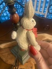 This vintage House of Hatten ornament is a charming addition to your Christmas tree. The adorable gray rabbit with a red bow is perfect for anyone who loves collecting vintage ornaments. Made in 1999, it is an original, licensed reproduction with the theme of Christmas. It is perfect for anyone who loves the nostalgia of vintage holiday decor. Whether for personal use or as a gift, this House of Hatten ornament is sure to be a treasured piece for years to come.