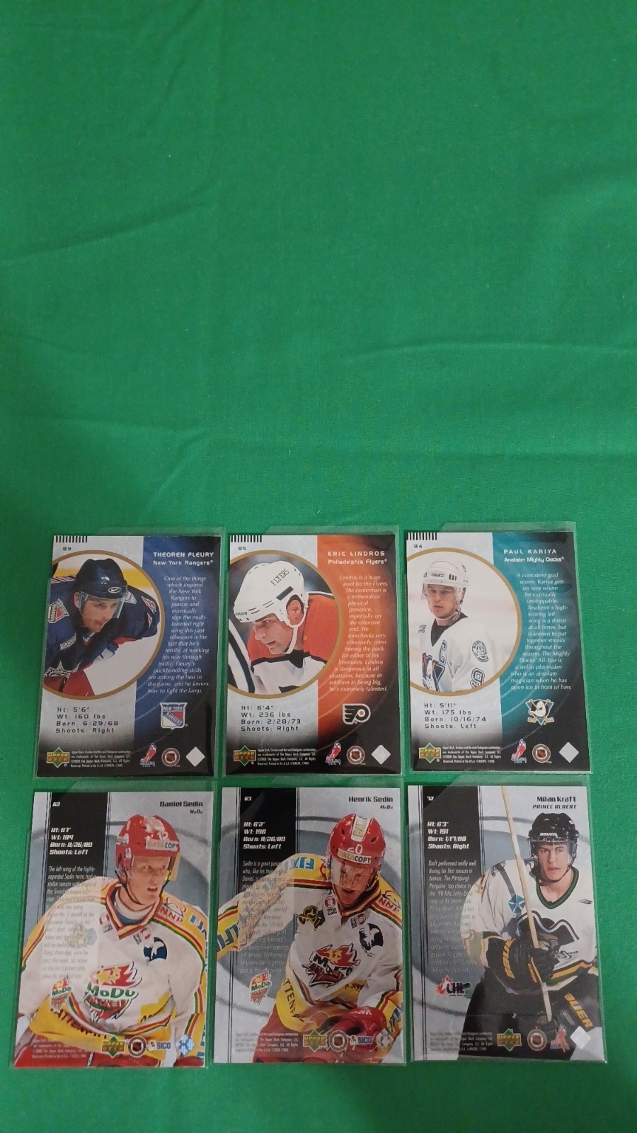 This listing is for 1999-00 Upper Deck Ovation SS SP Lot Of 18 Cards Hockey Short Prints. All cards are in brand new penny sleeves. I only use the finest BRAND NEW card conservation supplies on all my cards selling (BCW Penny Sleeves & Top Loaders) and cut the top-right hand corner of the sleeves to prevent any damage to corners of cards. ***Ships in a bubble mailer USPS Ground Advantage w/tracking*** All cards are in EX to NM-MT condition. SHIPPING IS FREE ON ALL ORDERS, Whether if it's 1 Card or 100 Cards. I will combine shipping on multiple purchases and ship for FREE! BEST DEAL ON EBAY! FAST & SAFE SHIPPING! You will receive the best service, with a quality product, prompt FREE shipping and communication from me as a seller! I'm looking to sell full-time, therefore I really appreciate you giving me the opportunity to earn your business and grow as a seller on Ebay. Thank you for stopping by!