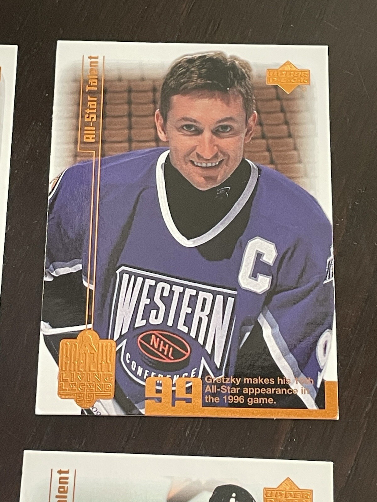1999-00 Upper Deck presents a lot of 6 unique Wayne Gretzky All-Star Talent hockey cards, perfect for any avid collector or fan of the NHL legend. These sports trading cards feature Gretzky in action during his illustrious career, making them a must-have for any hockey enthusiast. Add these rare and sought-after cards to your collection today and relive the magic of "The Great One" on the ice.