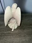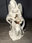 The Lenox figurine is part of the Baroque Angel Collection from 1999-2001, featuring an angel with a harp. Made of glossy and matte bone china, this original piece showcases a musical angel theme. While the harp on this figurine is damaged, it still holds its decorative charm for collectors of decorative sculptures and figurines. Made in Thailand, this elegant piece adds a touch of sophistication to any collection of angelic-themed decor.