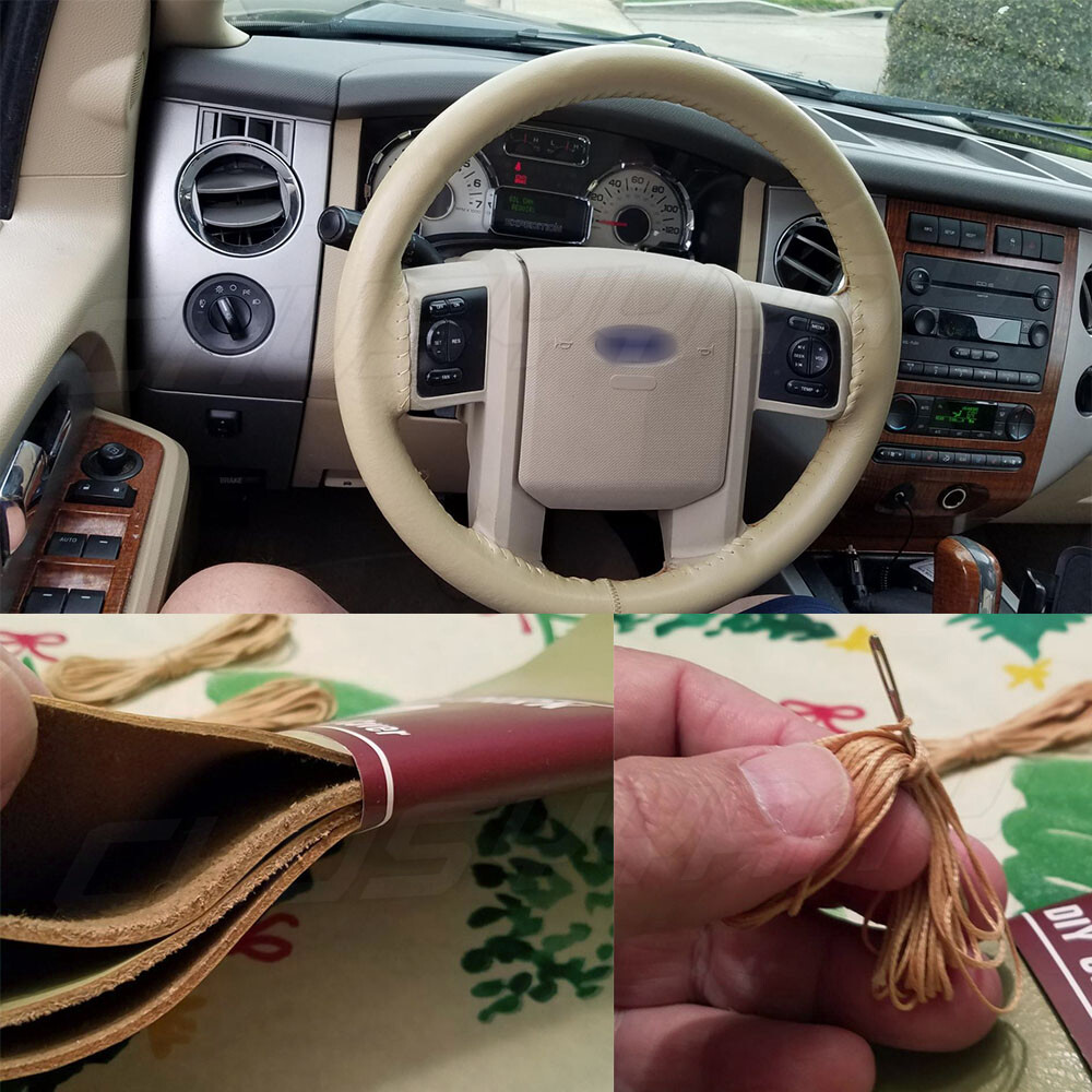 If the product is not suitable or there is a quality problem, please contact our customer service directly to solve the problem. We will give you a satisfactory solution. Brand New and Never been Used Color: Fashion Beige with Needle Elegance and Luxury Design, Fashion and Practical Combination Top Quality Soft Touch Leather, add Comfort, Safty and Protection for your Journey Ergonomic Design Provides Excellent Grip, Skidproof with Tyre Pattern and dotted Design Comfortable Hand Feel, massage your Palm to Relieve Drive Fatigue, Suitable for all Season Easy to Install Description: Steering Wheel Outer Diameter: 37-38cm(14.5"-15") cover size: 38cm(L) x 10.5cm(W) Compatible:Almost 90% car models with 37-38CM outside diameter steering wheel Item included: Steering wheel cover *1 Thread and needle tool set *1 Color: Beige Condition: 100% new (The picture and the actual product have some color difference, the actual color shall prevail in kind) Features: 1.Sewing it by yourself with thread and needle,enjoy DIY pleasure! 2.Provide extra comfortable feeling all round steering wheel. 3.Offer unique decoration for your car 4.No unpleasant smell. 5.No quarantine/customs problem. The package has: 1 leather steering wheel cover 2 needles 2 ties On Jan 23, 2025 at 00:43:28 PST, seller added the following information: