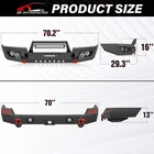 Front Or Rear Bumper W/ D-Rings &LED Lights For 1999-2004 Jeep Grand Cherokee WJ Please pay attention to the product options you select: If you choose Front & Rear Bumper,You can get 1 × Front Bumper, 1 × Rear Bumper and Mounting Hardware; If you choose Only Front Bumper,You can get 1 × Front Bumper and Mounting Hardware; If you choose Only Rear Bumper,You can get 1 × Rear Bumper and Mounting Hardware; Suitable Models : Compatible with 1999-2004 Jeep 2nd Gen Grand Cherokee WJ Package Includes : ① Front & Rear Bumper option : 1 x Front Bumper, 1 x Rear Bumper, 1 x Winch Plate, 7 x LED Lights, License Plate Frame, 1 x Hitch Receiver, 4 x D-rings, Paintable Armor, 2 x manual, screw fittings ② Fro nt Bumper option : 1 x Front Bumper, 2 x D-rings, Winch Plate, 5 x LED Lights , License Plate Frame, 1 x manual, screw fittings ③ Rear Bumper option : 1 x Rear Bumper, 1 x Hitch Receiver, 2 x D-rings, 2 x LED Lights, Paintable Armor, 1 x manual, screw fittings Product Information : Package Dimensions : 48.03"D x 25.79"W x 22.24"H Installation mode: Bolt-On With Sensor Holes: No Steel thickness: 3mm Placement on Vehicle: Front/Rear Item Weight: Front Bumper: 103 Pounds; Rear Bumper: 94 Pounds Material: Carbon Steel Color: Black (hand measurements may have an error of 2-3 mm/0.078-0.118 in) Feature : Front bumper : ① Our front bumper is made from robust high-strength steel, offering excellent durability. Its two-stage textured black powder coating not only enhances its appearance but also provides extra protection. Even if the coating is damaged, the bumper is engineered to resist rust, ensuring long-lasting performance and aesthetics; ② The front bumper is equipped with a universal license plate frame, a winch plate that can handle up to 12,000 pounds of weight, along with two D-rings, each rated at 9,500 pounds (4.75 tons). It also boasts an 120W LED spotlight and four 18W LED spotlights to provide powerful illumination. The package comes complete with installation instructions and all the required fittings; ③ The bumper does not include extension harnesses for connecting the lights. Extension harnesses need to be purchased separately; ④ Durability, Waterproof, Rust-proof; Rear Bumper : ① To reinforce its durability, our rear bumper features two sturdy D-ring shackle mounts, meticulously welded on both the inside and outside. It comes complete with 4.75-ton D-rings (rated at 9,500 lbs), an adaptable paintable design for customization, two 18W LED lights, and a standard 2" receiver hitch; ② Crafted from robust high-strength steel, our rear bumper exhibits remarkable durability. Its black powder coating not only enhances its aesthetics and protection but also provides rust resistance, ensuring both enduring performance and appearance, even in case of coating damage; ③ Our Rear Bumper is designed with a straightforward bolt-on system for effortless installation without the need for vehicle modifications. While modifications are not obligatory, we recommend professional installation to ensure safety; ④ Durability, Waterproof, Rust-proof; Warranty Period :2 year Standard Shipping (FedEx Ground or FedEx Home Delivery) Will usually ship within 3 business days of receiving cleared payment Please pay attention to the product options you select: If you choose Front & Rear Bumper,You can get 1 × Front Bumper, 1 × Rear Bumper and Mounting Hardware; If you choose Only Front Bumper,You can get 1 × Front Bumper and Mounting Hardware; If you choose Only Rear Bumper,You can get 1 × Rear Bumper and Mounting Hardware; Suitable Models : Compatible with 1999-2004 Jeep 2nd Gen Grand Cherokee WJ Package Includes : ① Front & Rear Bumper option : 1 x Front Bumper, 1 x Rear Bumper, 1 x Winch Plate, 7 x LED Lights, License Plate Frame, 1 x Hitch Receiver, 4 x D-rings, Paintable Armor, 2 x manual, screw fittings ② Fro nt Bumper option : 1 x Front Bumper, 2 x D-rings, Winch Plate, 5 x LED Lights , License Plate Frame, 1 x manual, screw fittings ③ Rear Bumper option : 1 x Rear Bumper, 1 x Hitch Receiver, 2 x D-rings, 2 x LED Lights, Paintable Armor, 1 x manual, screw fittings Product Information : Package Dimensions : 48.03"D x 25.79"W x 22.24"H Installation mode: Bolt-On With Sensor Holes: No Steel thickness: 3mm Placement on Vehicle: Front/Rear Item Weight: Front Bumper: 103 Pounds; Rear Bumper: 94 Pounds Material: Carbon Steel Color: Black (hand measurements may have an error of 2-3 mm/0.078-0.118 in) Feature : Front bumper : ① Our front bumper is made from robust high-strength steel, offering excellent durability. Its two-stage textured black powder coating not only enhances its appearance but also provides extra protection. Even if the coating is damaged, the bumper is engineered to resist rust, ensuring long-lasting performance and aesthetics; ② The front bumper is equipped with a universal license plate frame, a winch plate that can handle up to 12,000 pounds of weight, along with two D-rings, each rated at 9,500 pounds (4.75 tons). It also boasts an 120W LED spotlight and four 18W LED spotlights to provide powerful illumination. The package comes complete with installation instructions and all the required fittings; ③ The bumper does not include extension harnesses for connecting the lights. Extension harnesses need to be purchased separately; ④ Durability, Waterproof, Rust-proof; Rear Bumper : ① To reinforce its durability, our rear bumper features two sturdy D-ring shackle mounts, meticulously welded on both the inside and outside. It comes complete with 4.75-ton D-rings (rated at 9,500 lbs), an adaptable paintable design for customization, two 18W LED lights, and a standard 2" receiver hitch; ② Crafted from robust high-strength steel, our rear bumper exhibits remarkable durability. Its black powder coating not only enhances its aesthetics and protection but also provides rust resistance, ensuring both enduring performance and appearance, even in case of coating damage; 