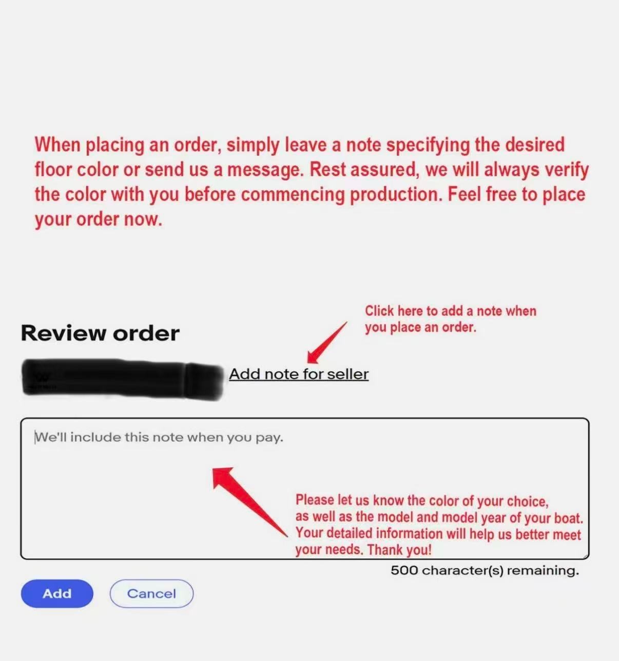We could not add the 16 floor color options that you can choose to use to each listing because of quantity limit, when you order it, you can just leave an order note for the floor color that you want to use or you can send us a message, we will always check and confirm the floor color with you before we make the floor for you.You can just order it. Please be aware that we can only make this boat floor by the first listing drawing. Before you order it, please double check the listing drawing outline shapes with your boat to make sure they can fit your boat well. As long as the floor pad outline shape can match your boat deck layout, it should fit well.We will not be hold responsible if the listing drawing floors do not fit your boat well because you do not double check our listing drawing. We can only make sure that the floors will be cut exactly by the listing drawing. If you are not sure if the drawing can fit well with your boat, please send us some photos of your boat deck layout or a short video to show your boat deck layout from stern to bow so we can help you to confirm the fitting. The floor comes with marine backing adhesive.It is peel and stick installation.You just need to peel off the white protection paper and put it down. You do not need to buy glue to install it. We offer 1 year warranty for all our boat floors. The EVA floor is 1/4″(6mm) thick two-color pad. You can choose your colors, texture and faux teak option. Additional custom text logos can also be incorporated on EVA floor. All routed logos and beveled edges will show the bottom color selected. All EVA floors come with marine backing glue. All EVA floors listed on our online store are “made to order” and not stocked so please allow up to 2-3 weeks for delivery. EVA floor fabrication time is about 4-5 days, then it will take about 7-10 days’ time to ship and deliver to your order shipping address.After you order it, please double check your order shipping address to make sure all the shipping address, postal code, city name and contact phone number are all correct. We will ship all orders by express shipping such as DHL, FedEX, USP or EMS express. We will choose the shipping courier as we see fit. Color choices: #1 Black over Brown #2 Black over Dark Grey #3 Black over Green #4 Black over Red #5 Black over White #6 Brown over Black #7 Brown over White #8 Coffee over Black #9 Dark Grey over Black #10 Dark Grey over Grey #11 Grey over Black #12 Grey over blue #13 Grey over Purple #14 Grey over Red #15 Grey over White #16 Black over Blue When you order it, please tell us the color you want for top layer and bottom layer. Additional custom text logo fee:50 USD/ea. Before you order it, please verify floor drawing and confirm that it matches your boat and understand that this cannot be returned without a restocking fee of 30%. We can also make the custom EVA teak decking by the template drawing or full size template that you can supply to us. The listing price does not include any destination duties/taxes/custom fees/etc. that will be due when the product arrives at destination countries/regions. It is the customer’s responsibility to pay for all custom duty/taxes/custom fees if any. 1.EVA material is a high-density sponge, does not absorb moisture 2.No blackening/darkening in humid environment 3.Hardness: Around 55-50 degrees 4.Soft & Comfortable 5.Easy maintenance(Use of common cleaning agents, rinse with brush and water 6.High and low temperature resistance 7.Sound insulation and anti-vibration 8.Easy replacement,Easy installation,No additional auxiliary materials required 9.UV resistant without color fading 10.Support for customized services(Colors and patterns) Precautions before payment: 1.Please check if the boat model match your Yacht model。 2.Some ship models have different configurations with different options, please pay attention to choose the most suitable one 3.If not sure whether your ship matches the drawings, please send us photos of swim platform and cockpit, we could help to determine if it is appropriate 4..If need to verify the size, please feel free to contact us Order colors: 1.If request color not included in color cards, need to waiting the other 10-15 days. Parcels can be sent out within 20 days(Start from the moment of payment done), extend the cycle when it comes to holidays 2.The picture colors for reference only, based on actual color(Photos taken by cell phones easy to present the chromatic aberration) For design: 1.We could design drawings according to the customer’s requirements(Free of Charge) 2.We could provide design drawings for your choices 3.Support LOGO customization(50USD/ea), document is needed, format file: DXF/AI/PDF/JPJ/PNG etc. For Installation: 1.Need to use acetone or alcohol to clean the floor before installation(To remove surface wax of new ships), make sure it is dry before starting the installation. 2.Lay all EVA floors flat before installation. When confirming the location, tear off the backing adhesive from one corner and start the installation 3.Fix it when pasting, cannot move EVA floors 4.Rolling with round rollers during installation process(Need to finger press LOGO position in advance to avoid air in it). If air generated, remove it by use of a small needle to pierce the air bubble 5.No soaking within 48 hours after installation Making Templates: If no matching ship model in our sale list, pls provide template we could produce it based on your template’s requirement Reference image to create template Make a note in the package to remark contact details, name, the brand of small ship/model/year of production, we will contact you immediately We will send design drawings to you for confirmation within 5 days after template received Complete production and send package within 3-5 days after confirmation of drawings(after payment done) Package: Soft material. Rolled and packed for shipment. Outer box package Shipment Express courier: DHL FEDEX TNT UPS 