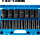19 Piece, Deep Socket, 6-Point Sockets, Rugged Construction, Cr-V, 1/2 Inches Drive Socket Set Impact 3/8 inch - 1-1/2 inch, with a Storage Cage High-Quality Alloy Steel: This impact socket wrench set is made of extra solid alloy steel, having abrasion-proof and wear-proof. They have a sturdy construction that will not easily crack under high pressure for maximum strength and longevity. Superior Performance: Whether you drive them with an impact wrench or by hand, these premium chrome vanadium sockets deliver superior performance. The impact socket set features a 6-point, high-torque design that contacts and grips the stronger flat sides of the nut or bolt head, not the weaker corners. 26 Sockets Included: This effort-saving 1/2 inches drive impact socket set comes with 19 deep impact drive sockets: 3/8'', 7/16'', 1/2'', 9/16'', 5/8'', 11/16'', 3/4'', 13/16'', 7/8'', 15/16 '', 1'', 1-1/16'', 1-1/8'', 1-3/16'', 1-1/4'', 1-5/16'', 1-3/8'', 1-7/16'', 1-1/2''. Compact & Portable: The 1/2 inches impact socket set includes a sturdy storage case for organization and transport, making this a great group of sockets for mechanics. Wide Application: This torque multiplier truck is perfect for removing and installing wheel lug nuts, particularly compatible with most trucks, RVs, and other heavy-duty vehicles. Professional tools We are devoted to providing high quality tool sets.