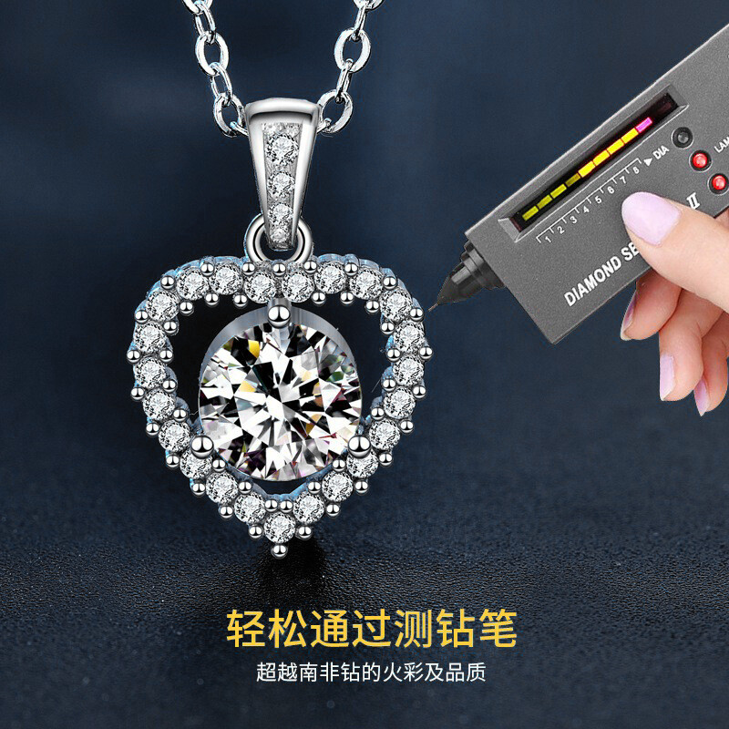 1CT S925 Sterling Silver Moissanite Love Heart necklace for women Pass Tester Size: pendant about 12mm, chain length: 40cm+5cm 18 inches, Weight approximately 2.8g Material: S925 Silver Material, Stone: Mozambique Diamond/1 Carat Fine polishing Please note: We promise a 100% pass rate with a diamond tester. The test result will be positive, and the brilliance will last a lifetime. Package includes: 1 Necklace, accompanied by a jewelry gift box, and GRA certificate. Method to verify moissanite: Please use a diamond tester for verification. If it cannot pass the test, it is 100% not moissanite. Our store guarantees that all jewelry sold is moissanite and will 100% pass the tester. Note: We will ship the parcel within 3 working days. You are the unique star: 925 sterling silver moissanite heart-shaped necklace Tired of the monotonous jewelry? Do you crave an accessory that can showcase your personality and set off elegance? This 925 sterling silver moissanite heart-shaped necklace is born for you. 925 sterling silver, understated luxury: We reject exaggeration and pursue texture. Selected 925 sterling silver, delicate and glossy, skin friendly and non allergic, can be worn with peace of mind even for sensitive skin. The simple heart-shaped design, classic and versatile, can easily handle daily commuting or dating parties, adding a touch of casual elegance to you. Mosang Stone, shining like you: Who said diamonds are necessary to shine brilliantly? We use high-quality moissanite, which has brilliant fire colors and hardness close to diamonds, but has a higher cost-effectiveness. Each moissanite is carefully cut, reflecting a charming light, just like you, confident and shining, unique. Niche design, European and American style: Say goodbye to mediocrity and embrace individuality. The design inspiration of this necklace comes from European and American minimalism, with smooth lines and unique shapes, perfectly interpreting the fashion concept of less is more. Whether paired with casual denim or elegant dresses, it can add a touch of carefree charm to you. A gift of love, a choice of heart: This necklace is not only an accessory, but also an expression of heart. Whether it's giving it to your beloved girlfriend or as a bridal accessory, it can convey your deep love and blessings. You deserve a better one: Don't hesitate anymore, this 925 sterling silver moissanite heart-shaped necklace is the unique accessory you've been looking for. Place your order now and let it witness every shining moment of yours! Suitable for: You who pursue individuality and unique taste; You, who love European and American style and advocate simplicity and fashion; You are looking for high-quality and cost-effective jewelry. Wearing scenarios: daily commuting, date parties, wedding celebrations, best friend gatherings... any moment you want to shine! Material: 925 sterling silver, high-quality moissanite Style: Simplicity, individuality, European American style Meaning: Love, confidence, uniqueness You are that unique star, this necklace is only meant to highlight your radiance.