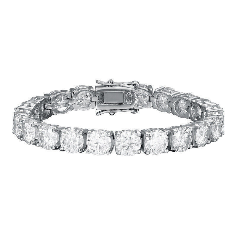 Moissanite offers timeless beauty and exceptional value. The stones we use are GRA certified VVS1 clarity Moissanite . The details matter so we do not buy simply the cheapest stones on the market. We only purchase the most beautiful ideal cut moissanite stones that offer the highest fire and brilliance. This is the best compromise between cheap fakes (CZ, crystal, rhinestone) and extremely expensive diamond solitaire stones. Natural diamond equivalent bracelets cost $2,000 - $50,000+ for larger sizes. Get the same look at a much better price! -VVS1 Clarity D Color GRA certified Moissanite Stones -Hearts and Arrows Pattern Ideal Cut. Excellent Rating -9.5 Hardness Rating. Diamonds are perfect 10, cheap fakes are 3-4. This means Moissanite won't dull over time. -925 Sterling Silver With Rhodium Plating or 14K Yellow Gold Plating -Passes many commonly used Diamond Testers -Comes with box with certificate (NOTE only 3mm and up have GRA certificate) ny, anniversaries,etc. -It is the best gift for Mother's Day, Valentine's Day, Christmas, birthday, graduation ceremony, anniversaries,etc.