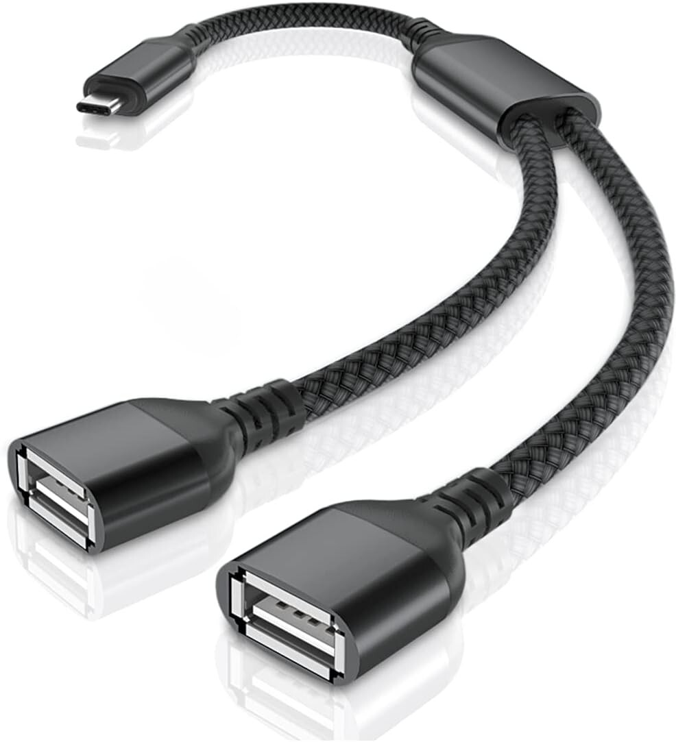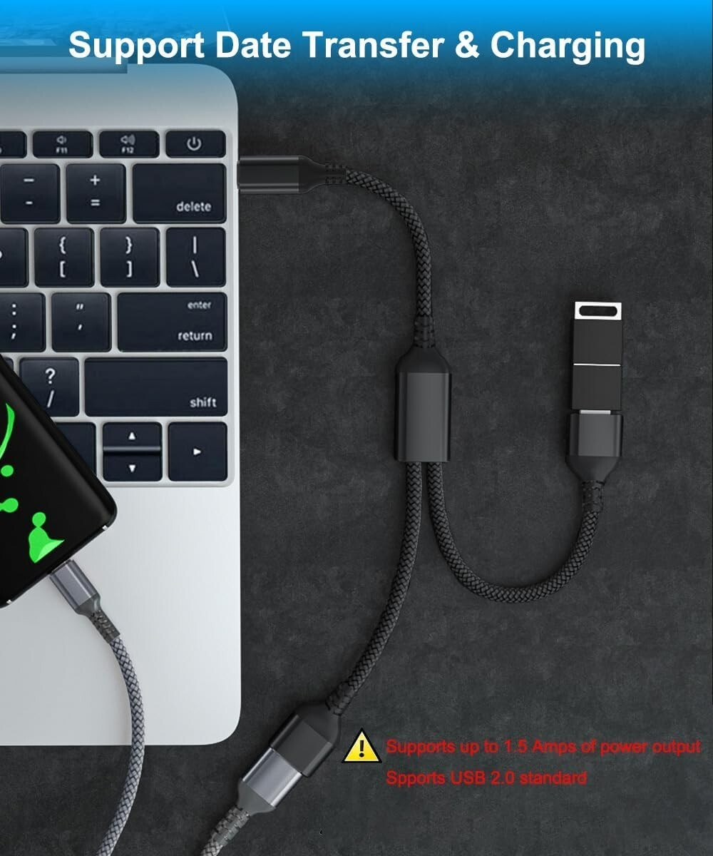 USB C Male to Dual USB Female Cable Adapter 1FT,Thunderbolt 3 to Double Type A OTG Splitter Cord Converter for MacBook,iPad Air Mini,Microsoft Surface Go,Galaxy Note 20 S23 S21 S22 (The Catch) No product is perfect, neither is this one. The rated voltage and current is 5V and 2A for this adapter, meaning each sub-cable of this adapter gets 1A when they are used at the same time. For more info, refer to the detailed description down below. (Less Constraint, More Freedom) Need more USB-A ports because all the new gadgets are coming without them? This USB-C to Double USB-A Adapter could just be your life-saver. Now you can use your USB-A heritage accessories with the help of this splitter even on devices with only one single USB-C port. (Notice: This is a USB splitter). (Less Chaos, More Order) Need to simultaneously connect to your accessories like keyboard and mouse but don't want too many cables messing up your working space? Now you can. This USB-C to dual USB Adapter makes it possible to connect to two devices with one single cable so that you are free from all the hassle of two tangled cables. (Less Wearing, More Saving) Tired of your wallet constantly getting worn and becoming thinner along with the wearing of other shoddy splitters? With double-braided nylon and aluminum casing that are not sensitive to twists and bends, this cable can last longer than you can imagine. (Less Confusion, More Concentration) With no need to download and install extra drive, you can simply plug this splitter in your device and start using it right away. No confusing configuration, no time-consuming adjustments. It's easy to stay focused with this USB cable.