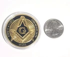 This unique Freemason Masonic Coin is a must-have for any collector or enthusiast of Masonic memorabilia. The design features the iconic Masonic symbol of the square and compass, along with the words "Challenge Coin" and "Masonic Brotherhood". This piece is perfect for displaying in a collection or for use as a special accessory.