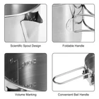 Feature: 1. Corrosion-resistant stainless steel construction. 2. With a spout for pouring. 3. Lid also serves as a pan. 4. Foldable handles for space saving and easy storage. 5. Works well on a stove or above campfire. 6. Drawstring mesh sack for convenient portability. 7. Perfect for camping, backpacking, hiking, picnic, and other outdoor activities. Specification: This camping kettle is made with stainless steel, corrosion-resistant and durable. It features a pouring spout, lid, and foldable handle for convenient use. It is perfect for outdoor camping, hiking, backpacking, etc. Features: Corrosion-resistant stainless steel construction. With a spout for pouring. Lid also serves as a pan. Foldable handles for space saving and easy storage. Works well on a stove or above campfire. Drawstring mesh sack for convenient portability. Perfect for camping, backpacking, hiking, picnic, and other outdoor activities. Specifications: Material: Stainless steel Handle: Short / Long (optional) Dimension: 12.3 * 15cm / 4.8 * 5.9in Weight: Approx. 350g / 12.3oz Package List: 1 * Camping Kettle Package List: 1 * Camping Kettle