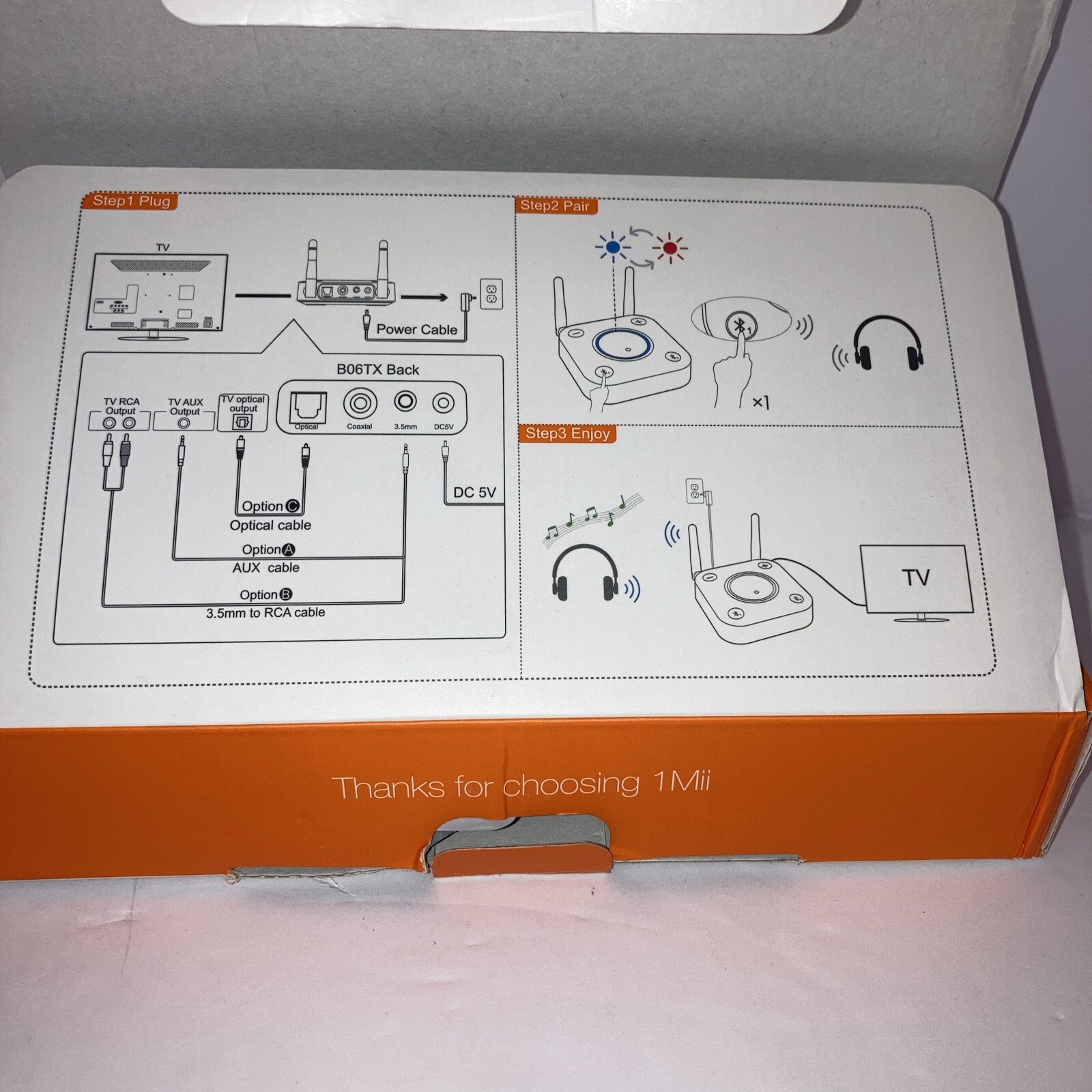 The 1Mii B06TX is a long-range Bluetooth 5.2 transmitter designed to wirelessly connect your TV, PC, or projector to your wireless devices. It is a sleek black color and has a package dimension of 7.52x4.37x1.54 inches. This transmitter is perfect for you if you need a reliable and efficient way to connect your devices without the hassle of wires. It weighs only 0.68 pounds, making it easy to carry around and use wherever you go. With its advanced Bluetooth 5.2 technology, you can enjoy a seamless and fast connection to your devices.
