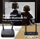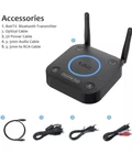 The 1Mii B06TX Bluetooth 5.2 Transmitter is designed to connect your TV to wireless headphones or speakers. It features Bluetooth v5.0 connectivity and offers multiple input options including Optical, Coaxial, 3.5mm auxiliary, and RCA inputs. The compact transmitter has dimensions of 4.3" L x 3.7" W x 1" H, making it suitable for use with audio receivers, PCs, and televisions. With its advanced Bluetooth technology, this transmitter allows for seamless streaming of audio from your TV to your preferred wireless audio devices.