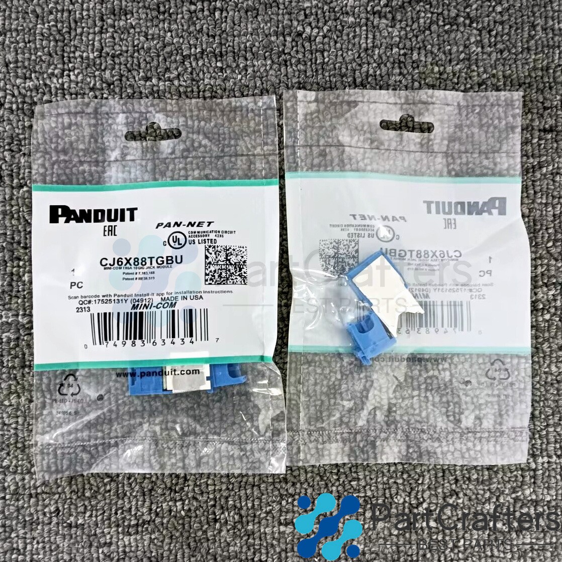Product Description New CJ6X88TGBU (BOX OF 50) For Panduit Cat6a 10 Gig Mini-Com Jack Blue Product Description ● Condition: New ● Manufacture Part Number: CJ6X88TGBU ● Application: Panduit Mini-Com Module, Cat 6A, 10 Gig, UTP, 8 pos 8 wire, Universal, Blue, TG Style ● Note: 1)Please check compatibility chart,part photos,part number above carefully to make sure it is what you need. 2)Professional installation is highly recommended! Package included: 50 x Module(1 BOX, As picture show) Notice : 1.Rest assure you will get what is pictured. 2.If you need to purchase a lot in bulk, please contact me! I will give you a satisfactory price discount! Thank you for your patronage. 3.If you have any Questions or would like more photos we are happy to provide you with anything you may need, please contact us by email and we will solve them for you. 4.If you are not completely satisfied with your purchase, you may return it for a refund or exchange it for a replacement. We only require that you contact us within 14 days of receiving your item and return it in the same condition it was received. 5.Please check the model before your purchase and compare the position of the screw hole In case of wrong purchase. About Us Shipping Returns Feedback I f you're looking to buy in bulk or looking for a long term part supplier, please contact me directly. We will provide you the best products and service. Put off your doubts and fears and thusrest assured purchase. We offer 100% Customer Satisfaction , if you have any questions , please let us know and we will do our best to rectify the situation . We fully stand behind with all the items that we are selling ! When you receive your item , please leave positive feedback , we rely on you for our good name 1.Free USPS shipping. 2.Your item will be carefully packed and shipped within 2 business day after payment received. 3.Orders are not processed on weekend & holidays. 4. Package transit time: please expect 3-5 business days within US. Buyer need express mail service please contact us before placing the order. International transportation services are temporarily not available. 1. Please read the item description and check the pictures carefully before bidding. Return or refund is available only if item DOA or there's error in item description causing the item not fitting your need. In such cases, seller pays for all related shipping cost if any. 2.Returns are also acceptable if buyer purchased this by mistake and item still in good condition for reselling. Buyer is responsible for all related shipping cost. Feedback We maintain high standards of excellence and strive for 100% customer satisfaction!Feedback is very important to us. We request that you contact us immediately BEFORE you give us neutral or negative feedback, so that we can satisfactorily address your concerns. About Us I f you're looking to buy in bulk or looking for a long term part supplier, please contact me directly. We will provide you the best products and service. Put off your doubts and fears and thusrest assured purchase. We offer 100% Customer Satisfaction , if you have any questions , please let us know and we will do our best to rectify the situation . We fully stand behind with all the items that we are selling ! When you receive your item , please leave positive feedback , we rely on you for our good name Shipping 1.Free USPS shipping. 2.Your item will be carefully packed and shipped within 2 business day after payment received. 3.Orders are not processed on weekend & holidays. 4. Package transit time: please expect 3-5 business days within US. Buyer need express mail service please contact us before placing the order. International transportation services are temporarily not available. Returns 1. Please read the item description and check the pictures carefully before bidding. Return or refund is available only if item DOA or there's error in item description causing the item not fitting your need. In such cases, seller pays for all related shipping cost if any. 2.Returns are also acceptable if buyer purchased this by mistake and item still in good condition for reselling. Buyer is responsible for all related shipping cost. Feedback Feedback We maintain high standards of excellence and strive for 100% customer satisfaction!Feedback is very important to us. We request that you contact us immediately BEFORE you give us neutral or negative feedback, so that we can satisfactorily address your concerns. powered by