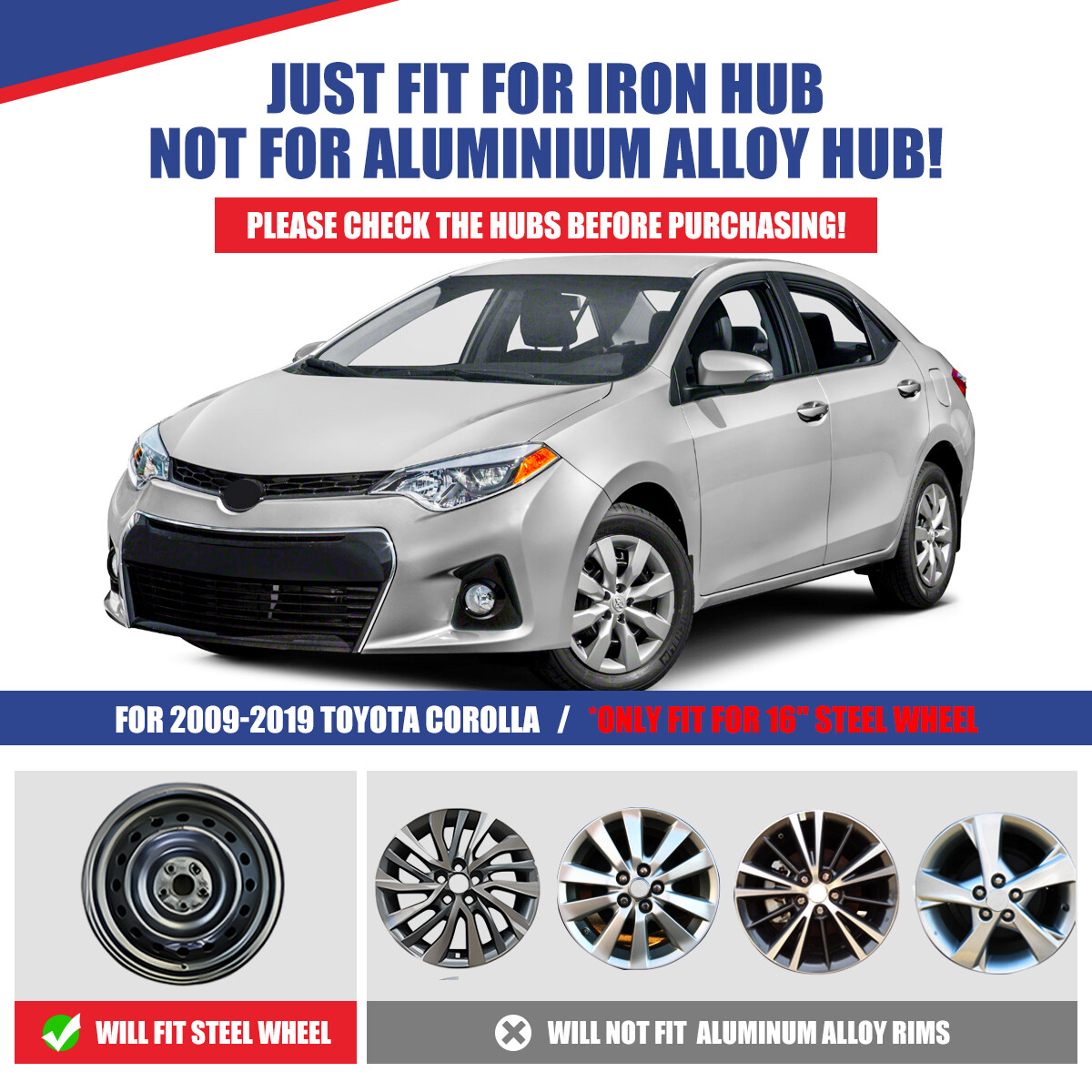 Title Other Head Lights For Jeep For Ford For Dodge For Chevy/GMC For Honda For Toyota For Nissan For Subaru For Mazda For Acura For Mitsubishi For Audi For MINI Tail Lights For Jeep For Dodge For Chevy/GMC For Toyota For Nissan For Honda For Volkswagen For Mazda For Subaru For Isuzu For Mitsubishi For Cadillac For MINI Fog Lights For Jeep For Ford For Honda For Dodge For Toyota For Chevy/GMC For Nissan For Mazda For Subaru For Infiniti For Cadillac For Scion For Lincoln For Acura For BMW For Hyundai For Volkswagen For Buick For Chrysler For Lexus For Mercedes Benz For Kia For Audi For MINI Turn Signal Lights For Jeep For Ford For Dodge For Chevy/GMC For Toyota For BMW For Subaru For Nissan For Cadillac For Lincoln 1PC for 2014-2016 Toyota Corolla 16" Wheel Covers Repalcement Snap On R16 Hubcap Specification: Color: Silver Compatible Wheel Diameter: 16 inch Features:Car Wash Safe, Easy to Install, No Tools Required Material: ABS Number in Pack: 1 Wheel Type: Steel Installation Type: Snap-On Placement on Vehicle: Front, Left, Rear, Right Steel Wheel: 42611-02A00 Wheel Cover: 42602-02430 Features: Fit For 2014-2016 TOYOTA COROLLA - Design for 16" wheel hubs. Please know that and check your wheel before purchase to ensure fitment. Protect Your Wheels - Keep your vehicle looking sleek and new with these universal-fit hubcaps that offer reliable protection against scratches, dings, and other types of damage. Easy to Install - Designed to fit most standard wheel size, these hubcaps can be quickly and easily snap on your wheels without the need for special tools, making them a great choice for busy vehicle owners. Durable - Made from high-quality ABS materials, these hubcaps are built to withstand the rigors of daily use, keep your vehicle looking great for years. Stylish - Upgrade the look of your car or truck with these sleek hubcaps to enhance the appearance of your vehicle. Package Includes A: 1PCS Wheel Cover Hubcaps Payment Delivery details Terms of sales About us Contact us Payment We accept PayPal (Recommended), credit card, VISA, Google Pay & Discover etc. Please submit your payment within 7 days after your purchase. If not, eBay will automatically open an Unpaid Item Dispute on our behalf if the item(s) are not paid within 7 days. Delivery details Please double check your delivery address and contact information. All items will be shipped within 1 business days after payment received. Tracking numbers will be easily accessible ASAP they are created and processed. Terms of sales Free 60 days Return, we will cover the return post fee. If a defective product was received, please do not hesitate to message us via eBay message. We will response in 24 hours in business to resolve the problem We stand behind our products. Items can be returned for exchange or full refund within 60 days from the date you receive. About us Winjet has a huge warehouse and office located in the United States. All US domestic 48 states customers are able to benefit from the FREE SHIPPING services. Our experienced, professional customer service representatives offers prompt and courteous service. Best quality products, outstanding services and professional experience keep our customers. Contact us Please feel free to contact us if you have any problems. Emails will be replied within 24 hours in working days. After hours emails will be replied on the next business day. Country/Region of Manufacture United States OE/OEM Part Number "Steel Wheel: 42611-02A00, Wheel Cover: 42602-02430" Type Hub Cap Features Easy to Install, Lightweight, No Tools Required, Unique design Manufacturer Part Number WJ-5110-B-16-1pcs Placement on Vehicle Front, Left, Rear, Right Brand Winjet Manufacturer Warranty Yes Material ABS, Plastic Installation Type Snap-On Finish Glossy Model 16 in Universal Hubcap for Iron Wheels Compatible Wheel Diameter 16 in Vintage Part No Universal Fitment No Performance Part No Number in Pack 1 Color Silver